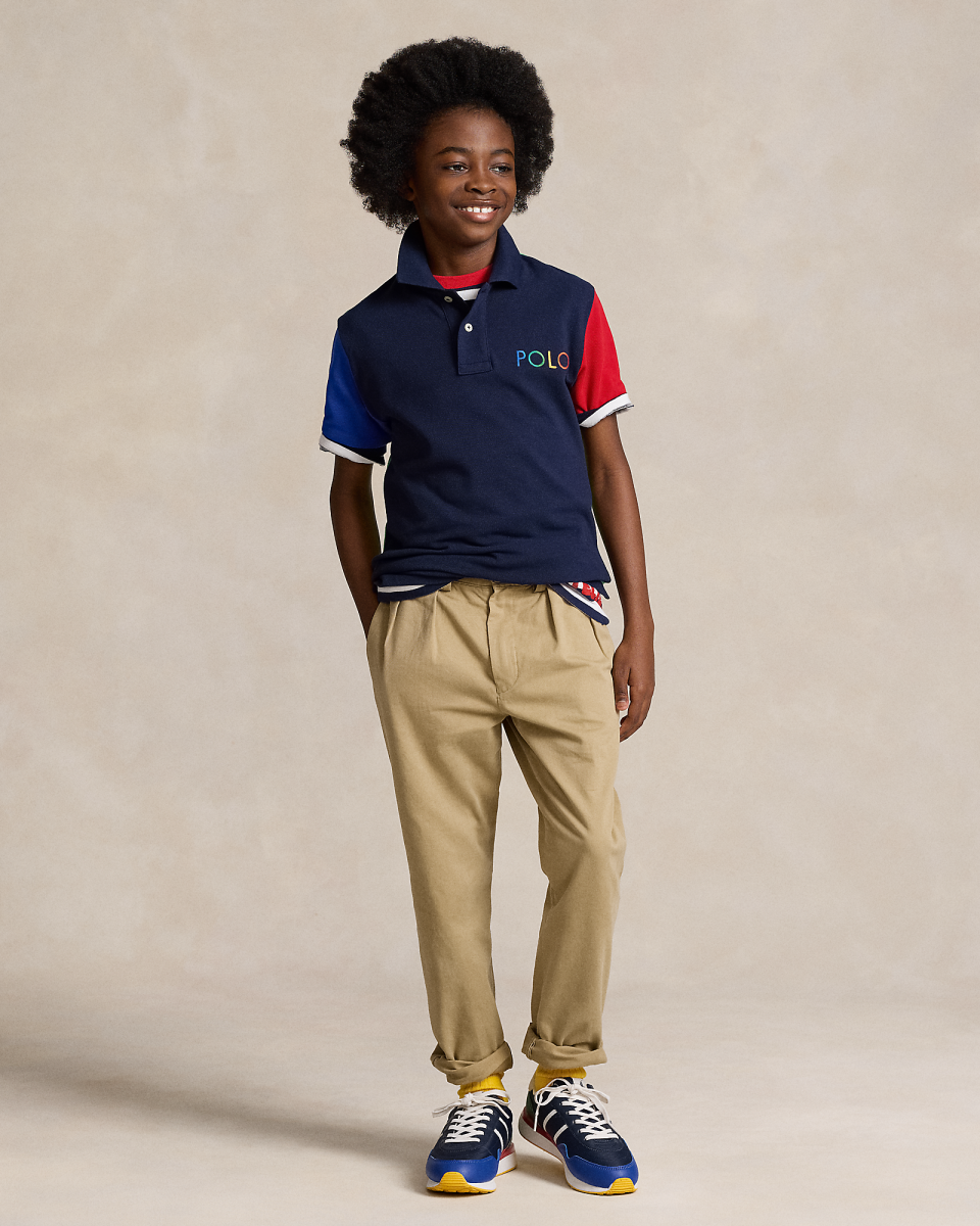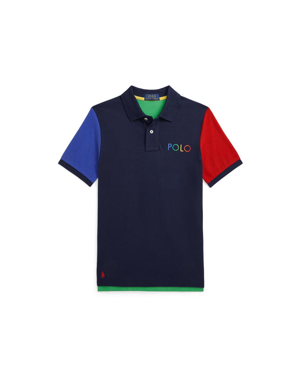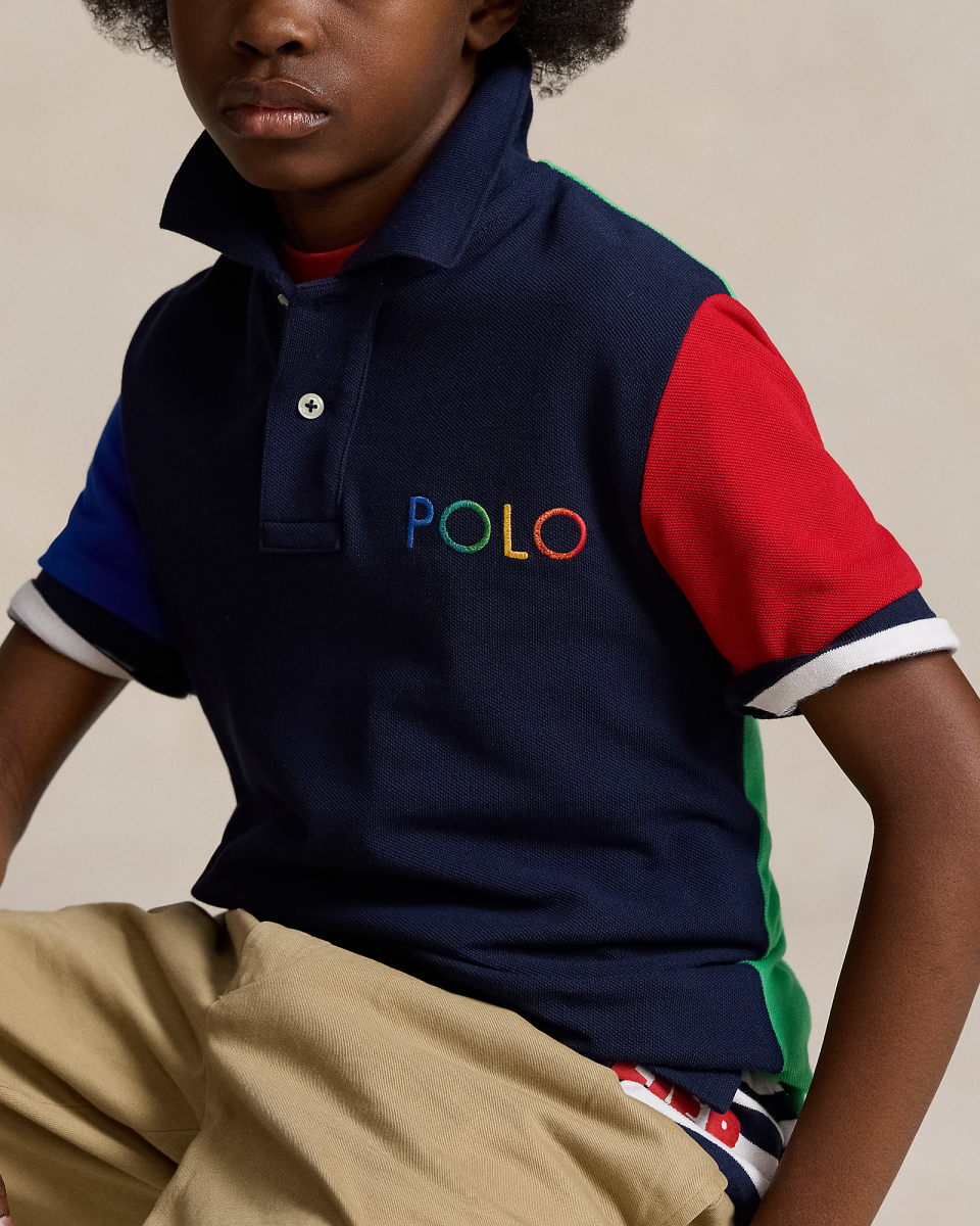 这款棉质网眼布 Polo 衫采用醒目的色块设计,饰有彩虹色徽标刺绣