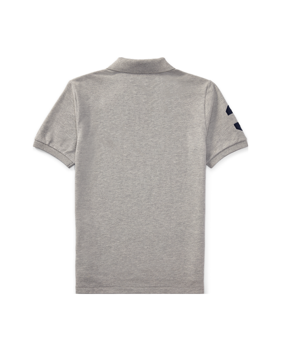 本款马球衫饰有数字“3”斜纹补丁,正如马球队队员所穿马球衫一样