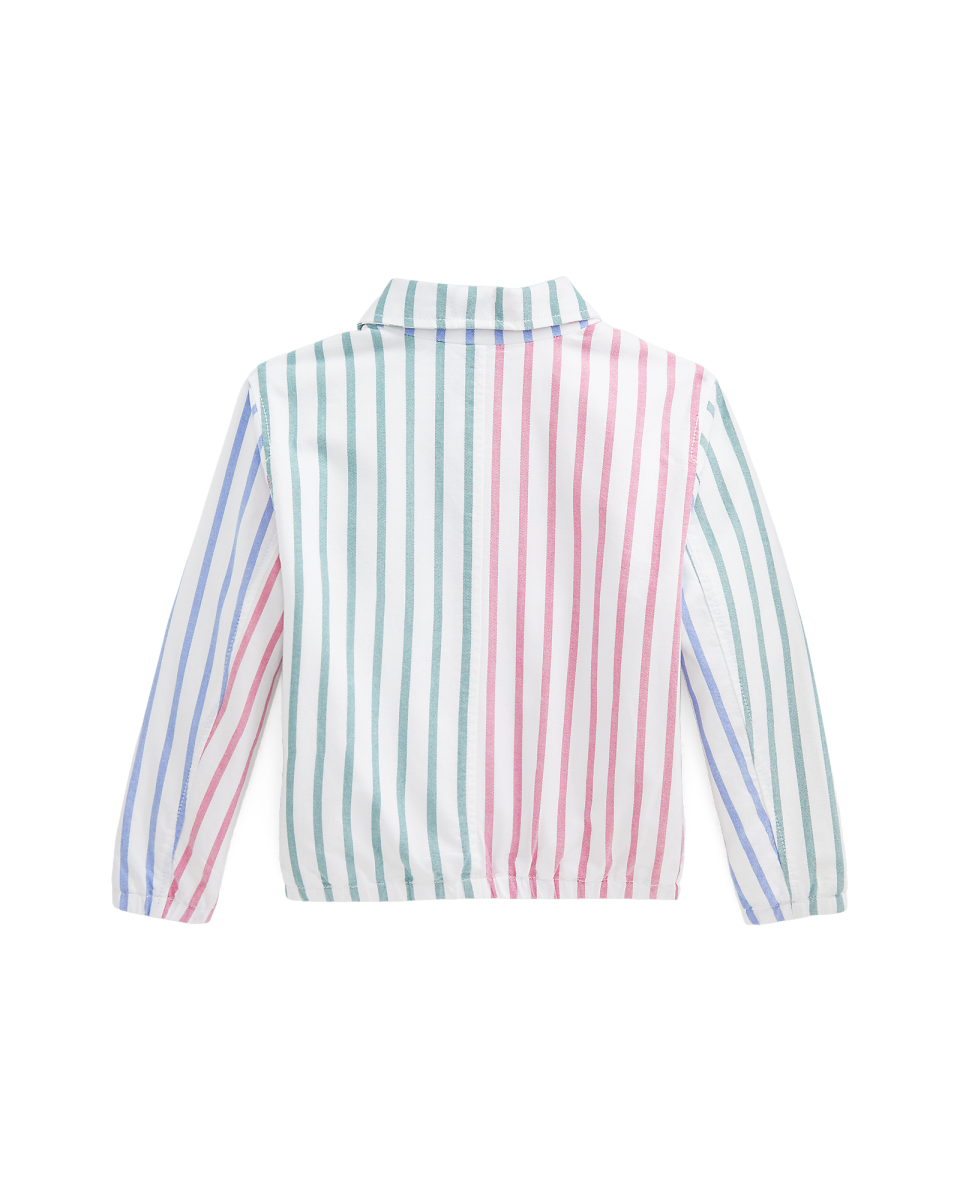 本季这款 Bayport 夹克选用三种不同的棉质牛津布制成,饰有彩色标志性小马图案,打造经典 Ralph Lauren 外观