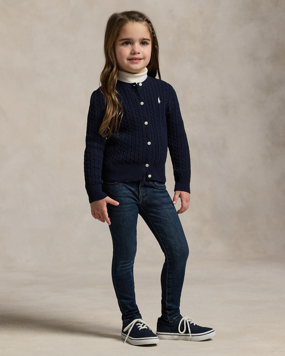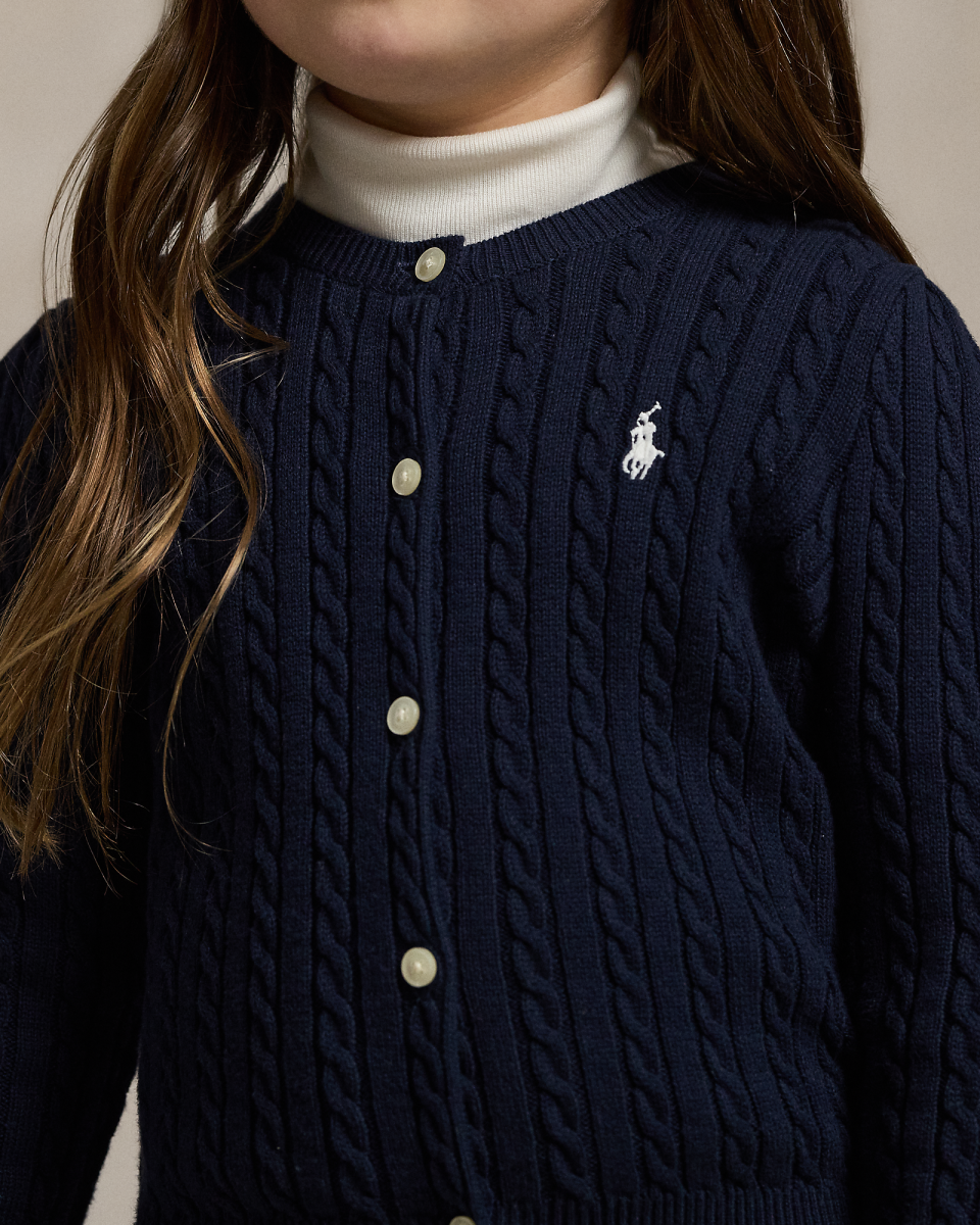 这款经典绞花编结开襟衫选用柔软的材质制成,是搭配 T 恤和连衣裙的理想薄型叠穿单品