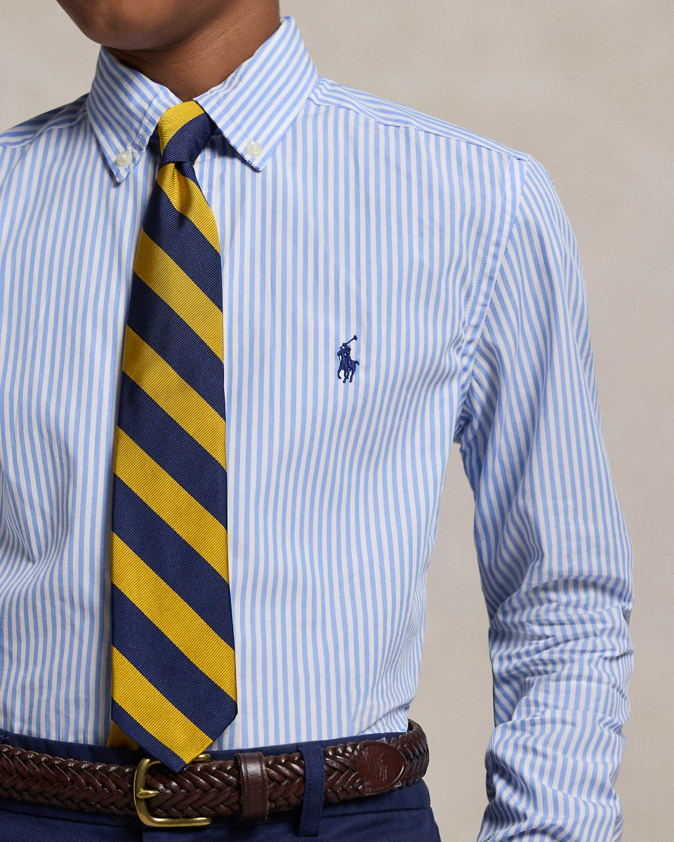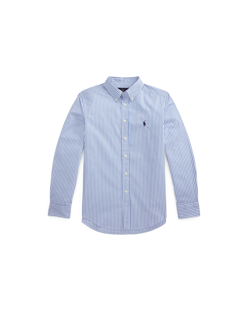 这款条纹衬衫经过梭织处理,为棉质面料增添了些许弹力,确保活动自如