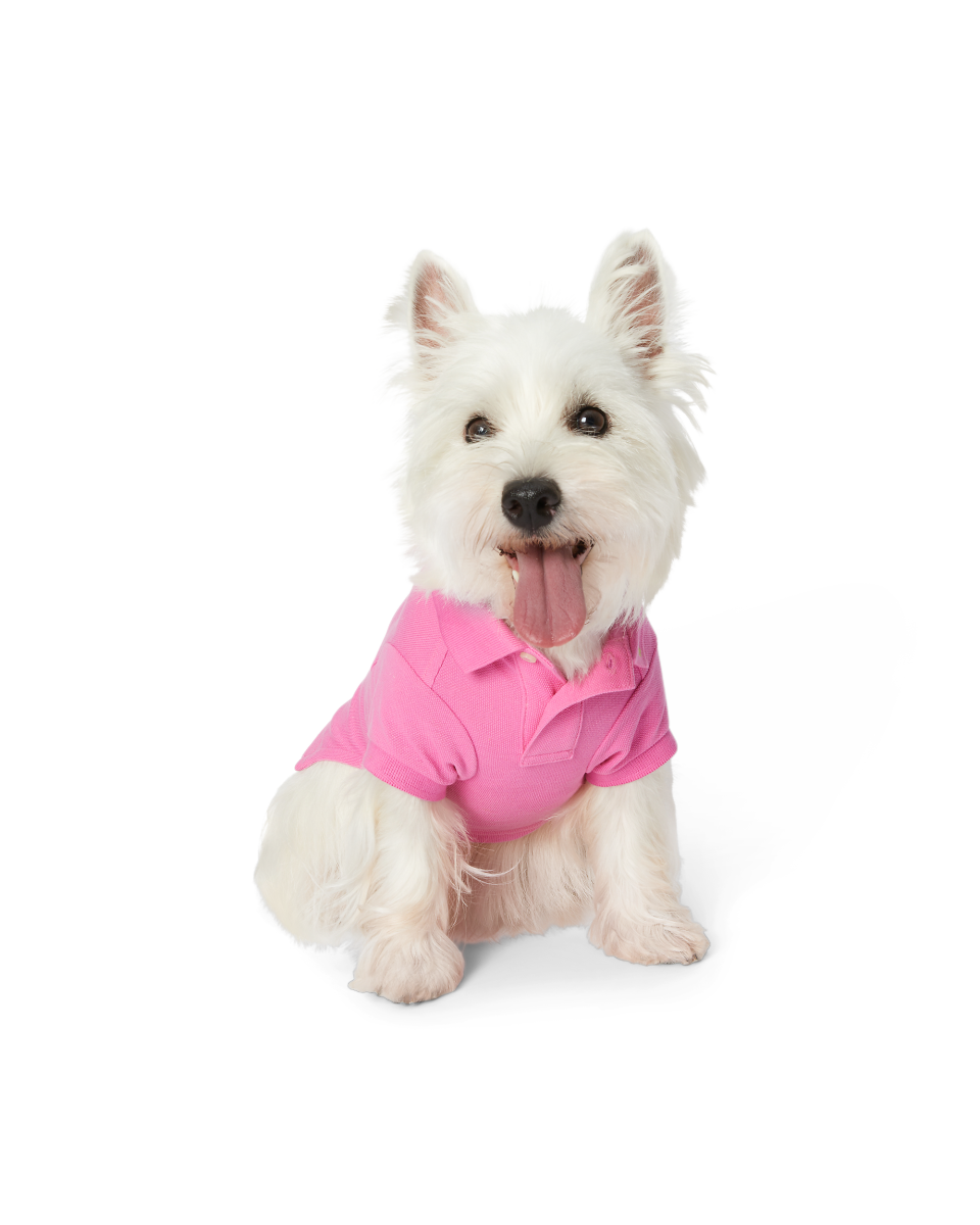 这款棉质网眼布小狗 Polo 衫灵感源自我们的经典 Polo 衫,带有隐蔽的绳孔,衣领饰有标志性小马刺绣
