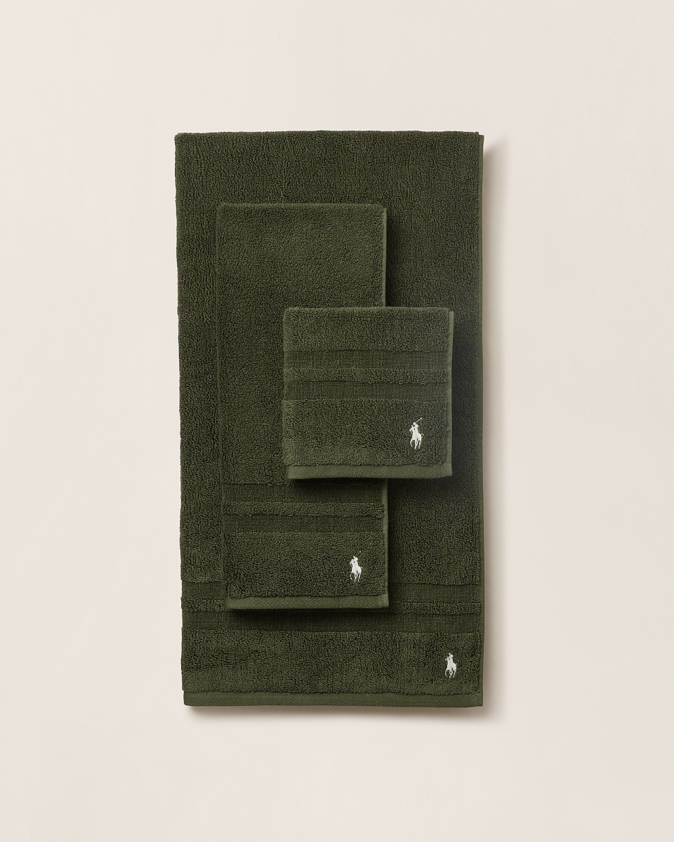 Ralph Lauren 的 Payton Player 浴室系列选用布满气孔的轻盈棉质毛圈布制成,打造具有吸水性能的毛巾,采用双层镶边,饰有标志性小马刺绣,彰显 Polo 经典风格