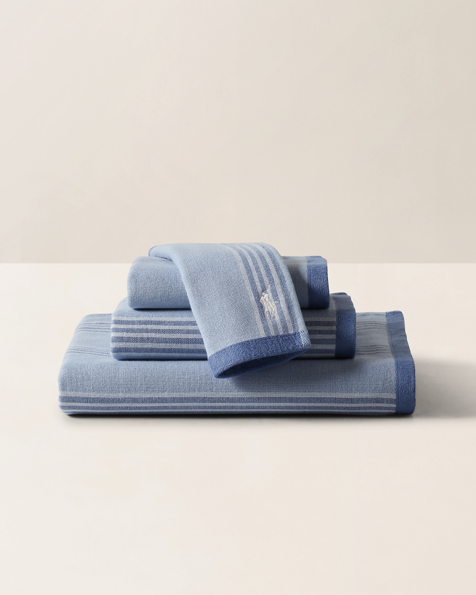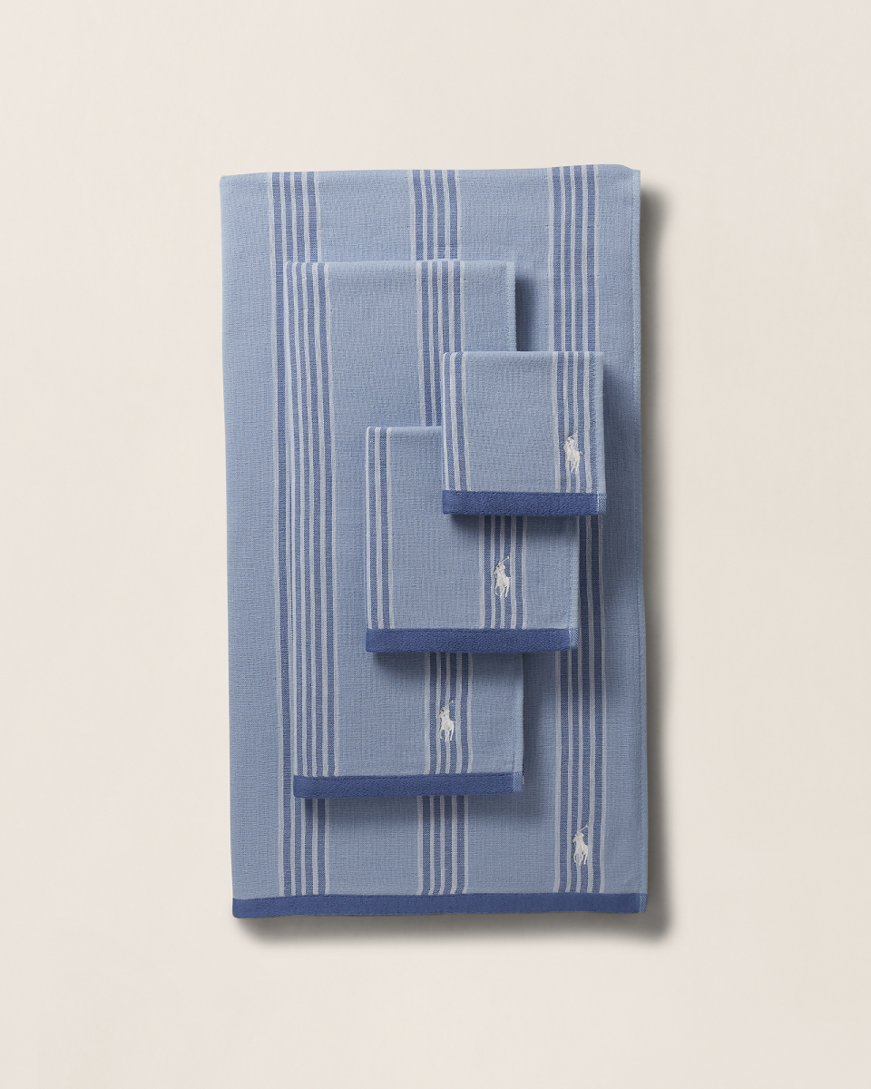 这款洗脸巾选用吸水性佳的棉质毛圈布制成,边缘带经典条纹,饰有标志性小马刺绣