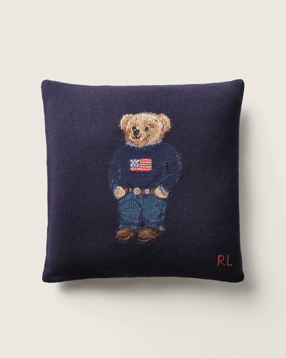 这款舒适的羊毛抱枕饰有标志性 Polo 小熊图案,小熊身穿旗帜图案毛衫和牛仔裤,搭配金属装饰腰带和乐福鞋。Polo 小熊于 1991 年首次推出,是 Ralph Lauren 世界备受喜爱的标志