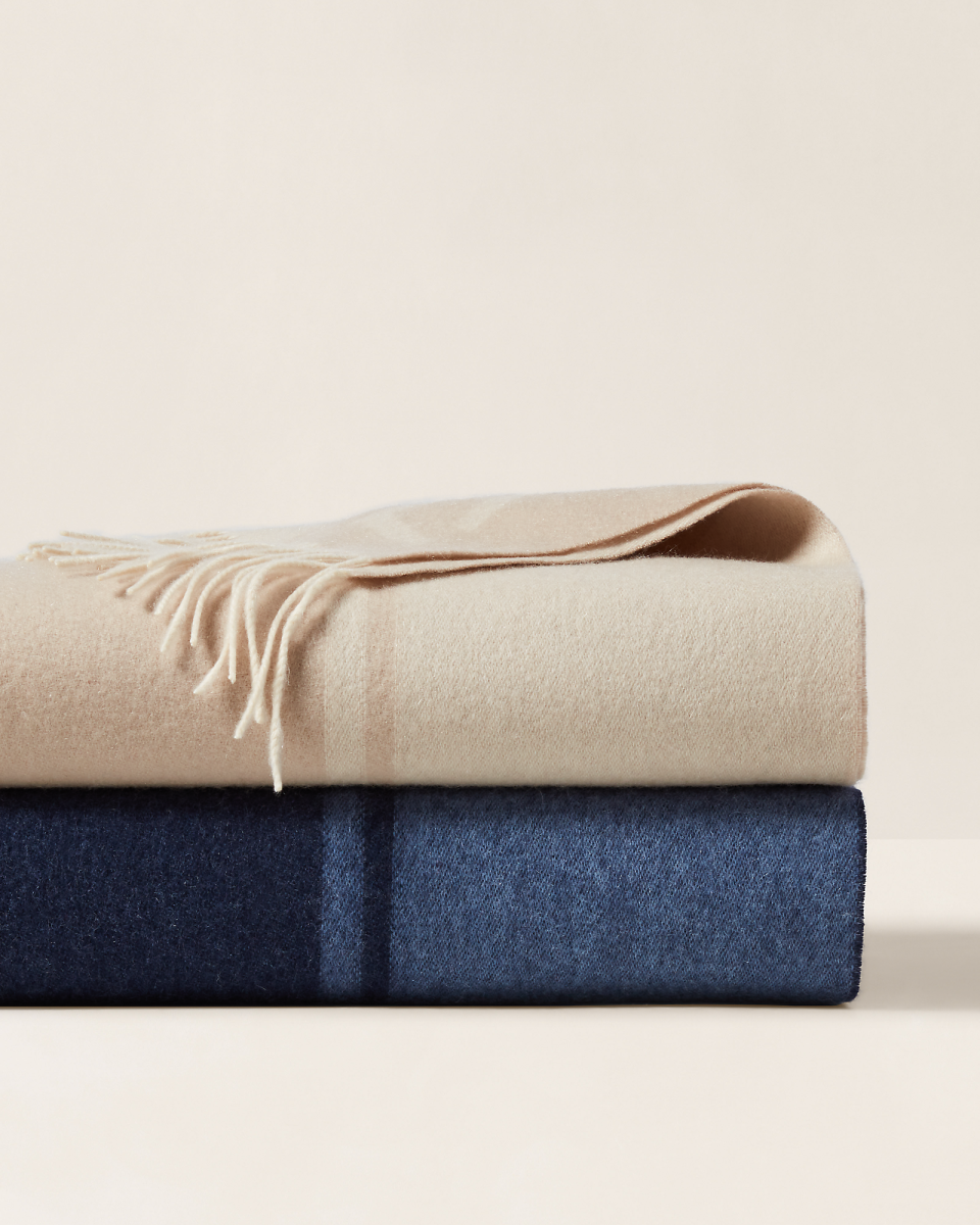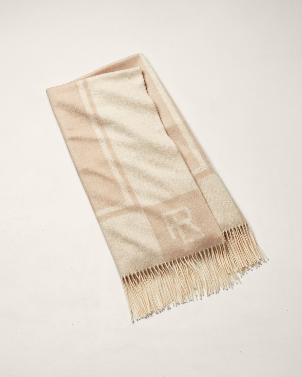 这款 Hawkins 毛毯选用雅致的山羊绒面料制成,边缘带流苏细节,一角饰有 Ralph Lauren 标志性层叠徽标