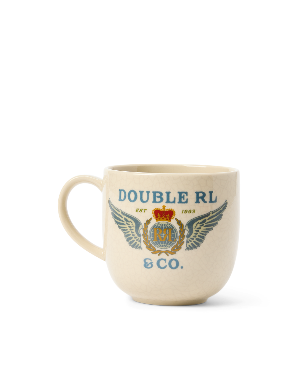 这款马克杯为奶油色炻器,经裂纹处理,呈现复古风格,饰有有翼图案和 Double RL 字样徽标,装在标志性包装盒中