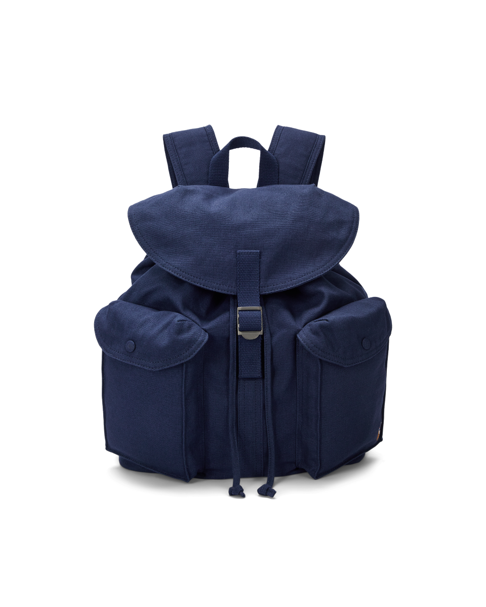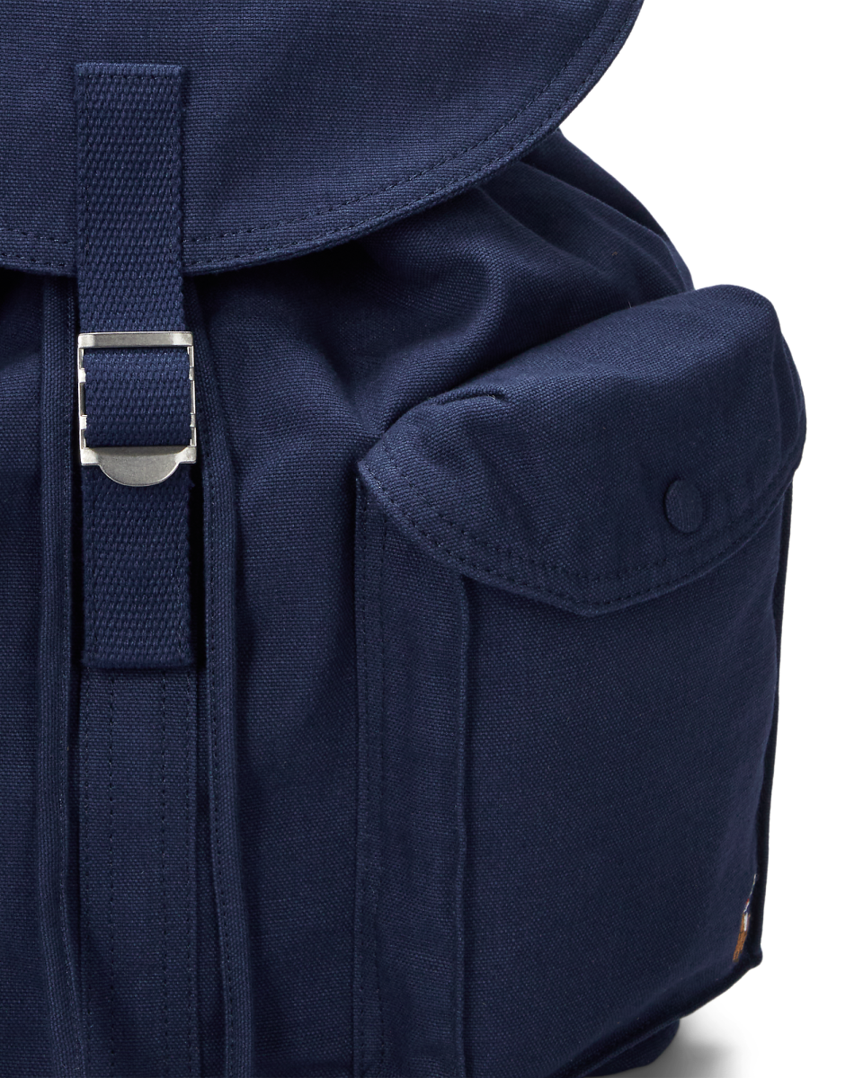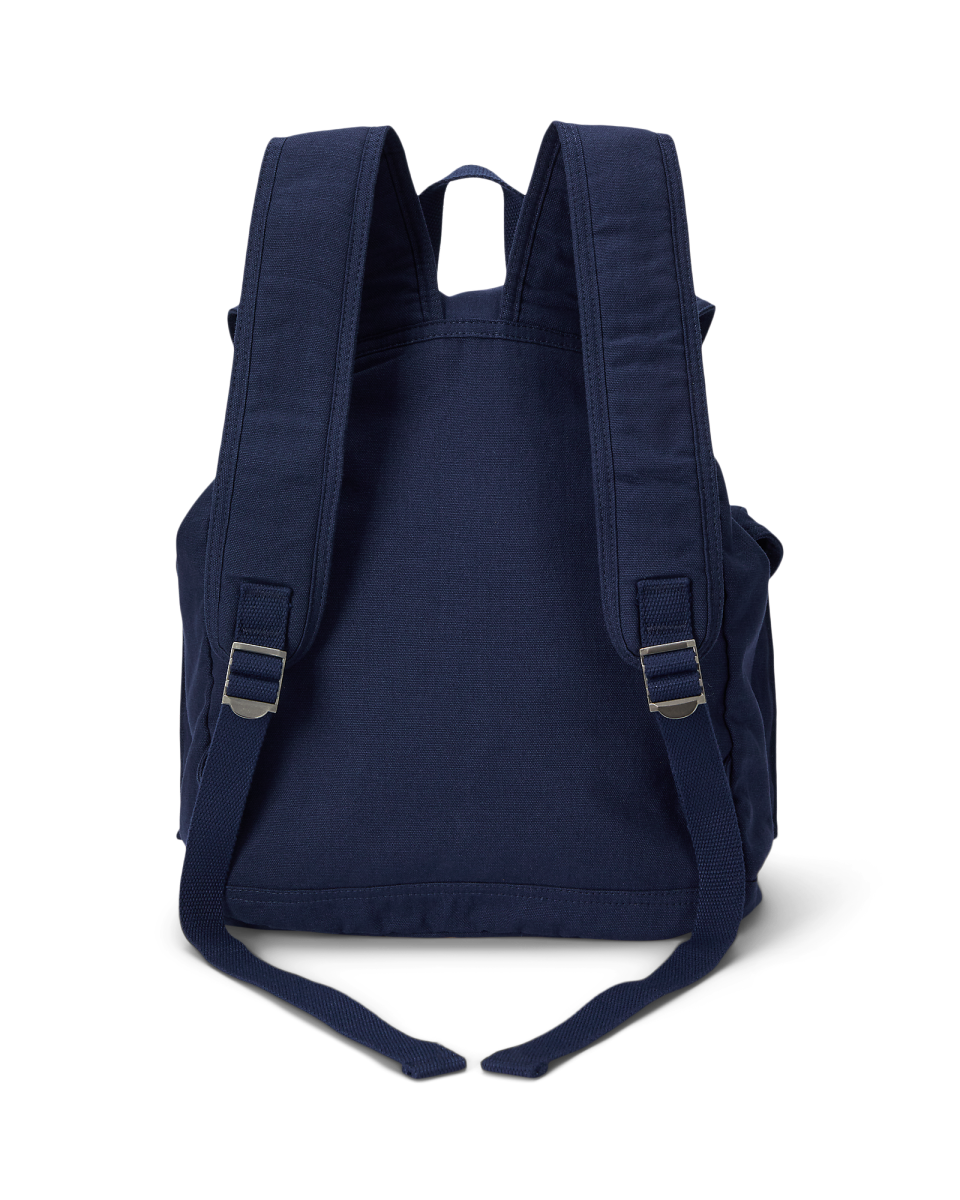 这款双肩包选用经久实用的帆布制成,抽绳顶部配有搭扣式包盖,饰有彩色标志性小马刺绣