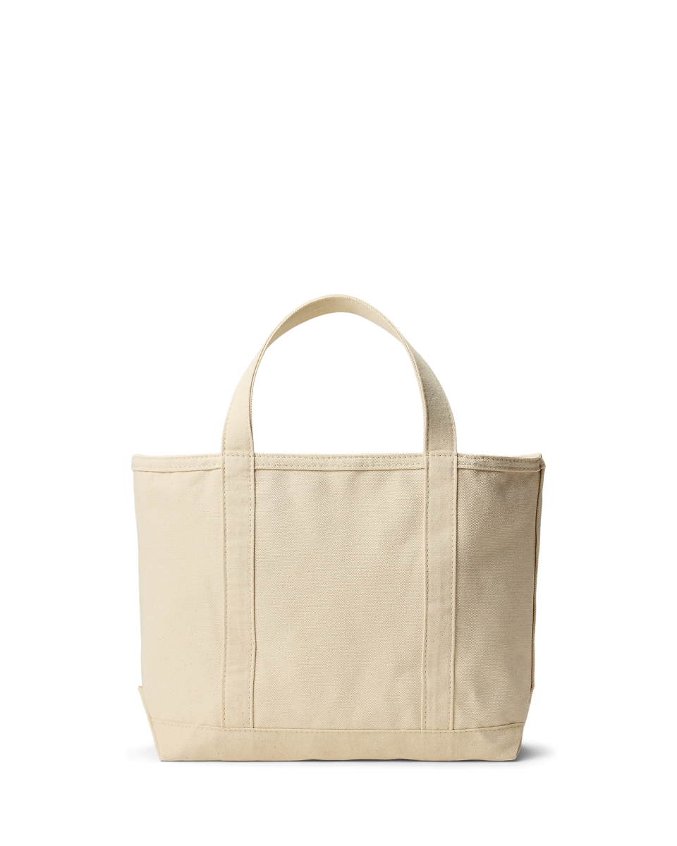 这款经久实用的托特包属于Ralph's Coffee 系列,旨在致敬经典美式咖啡店风格,选用帆布制成,正面饰有标志性徽标刺绣