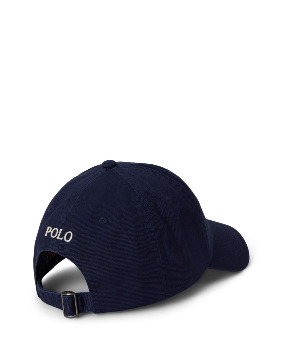 这款棒球帽饰有标志性小马刺绣,增添了标志性 Polo 风格,选用斜纹棉布制成,背面饰有我们的徽标和搭扣式帽带