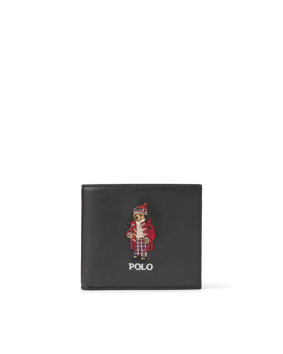 在这款牛皮革钱夹上,Ralph Lauren 标志性吉祥物身穿富有节日气息的冬季服饰
