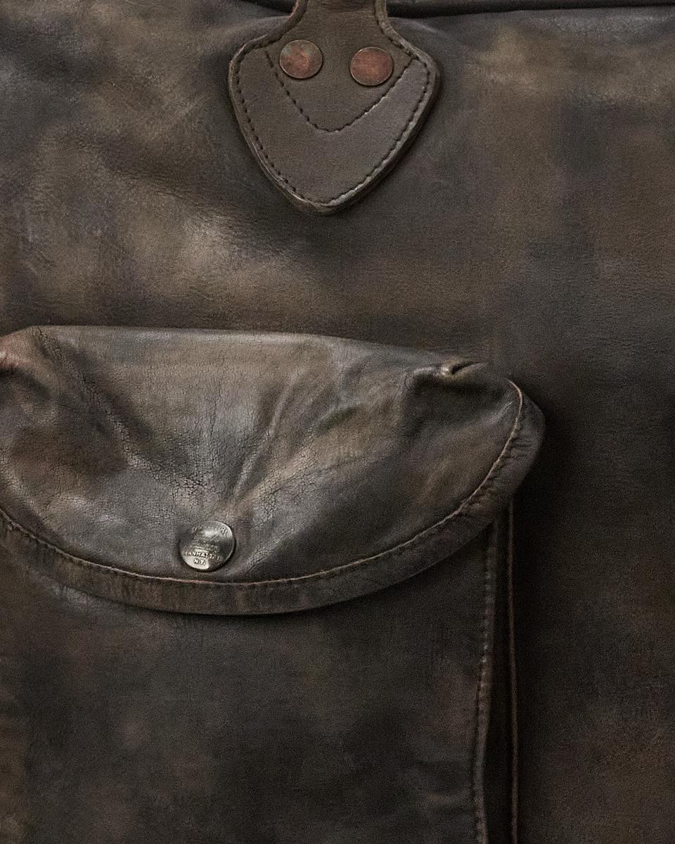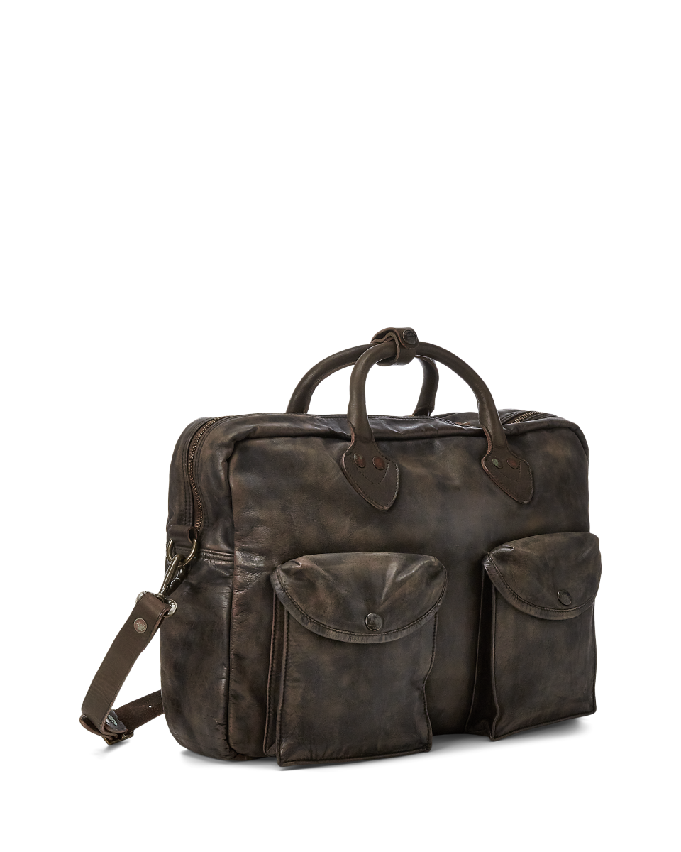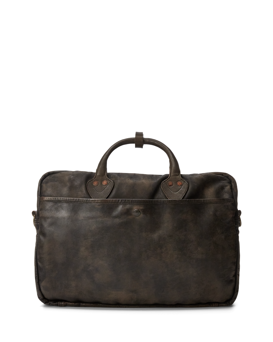 这款公文包选用轻盈柔软的牛皮革制成,内置一个笔记本电脑袋,黄铜五金件,带有复古饰面,复古黄铜色铆钉