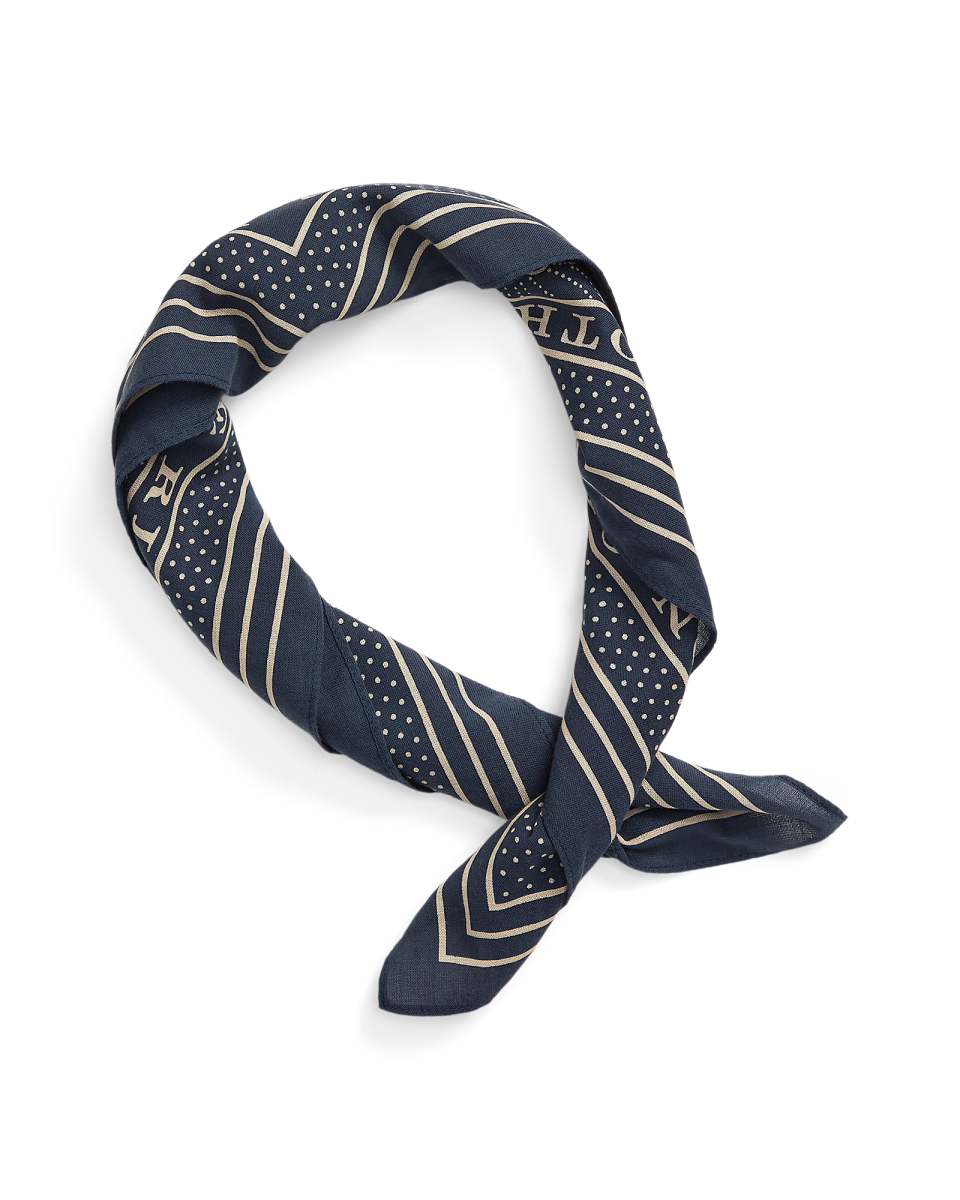 这款大方巾选用轻盈的梭织棉质面料于日本制成,中间印有船锚图案,Double RL 徽标与波点镶边,经卡其色漂洗处理