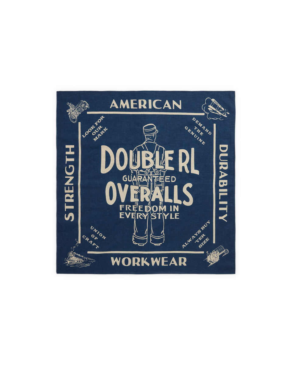 这款大方巾选用轻盈的梭织棉质面料制成,采用靛蓝染色工艺,采用拔染印花工艺,饰有 Double RL 和背带裤图案,经漂洗与着色处理