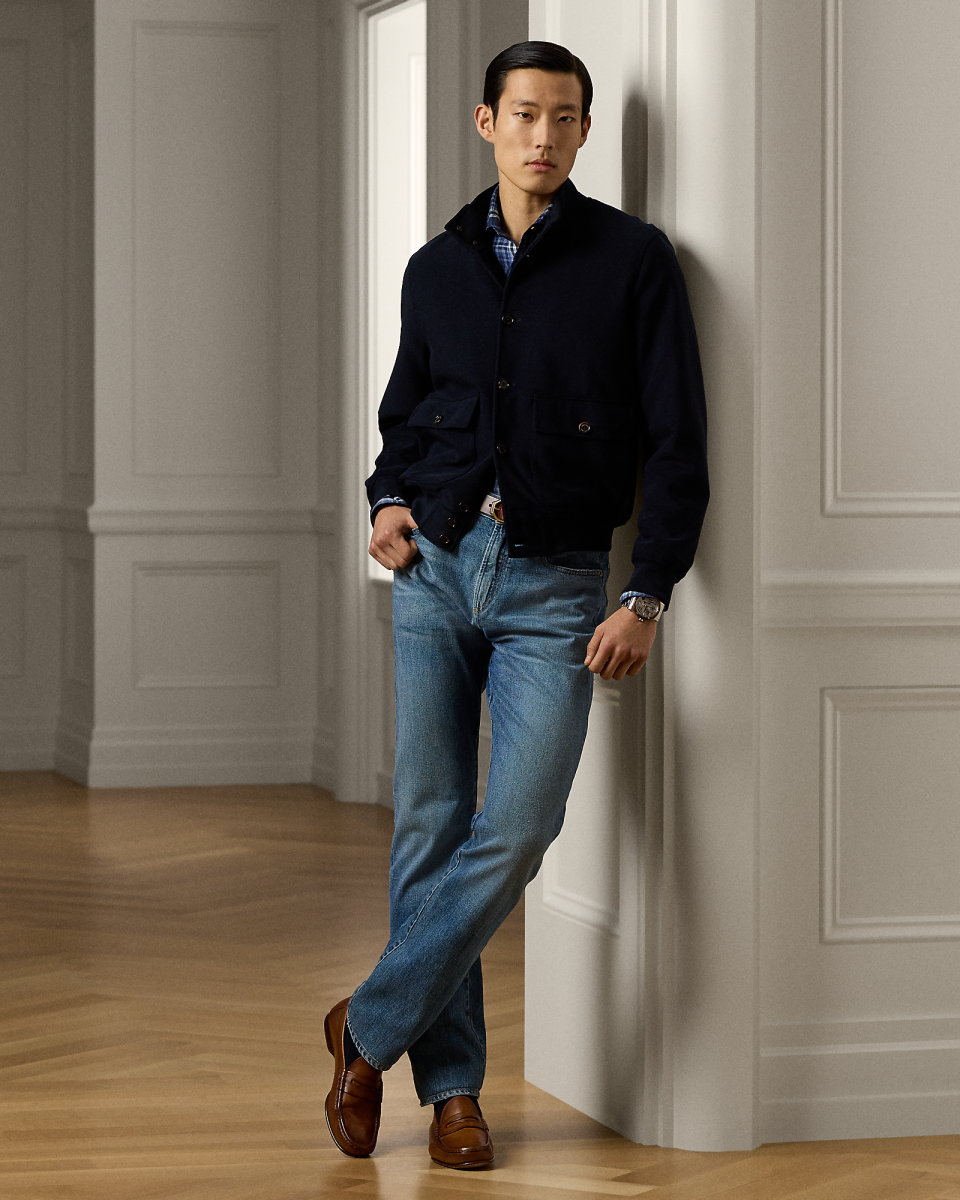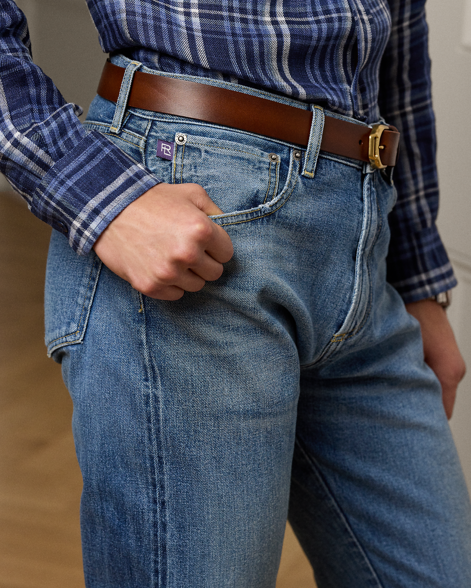 这款牛仔裤选用专为 Ralph Lauren 研发的弹力牛仔布于意大利制成,所用的右斜纹布以传统梭织机制成