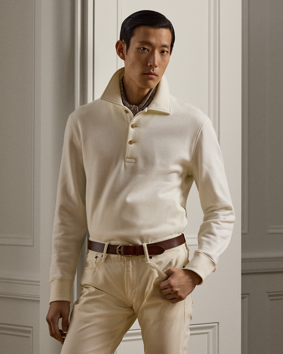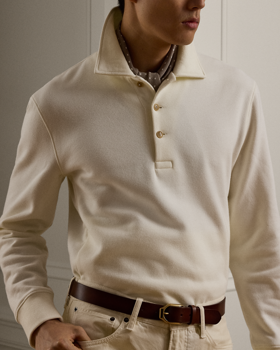 这款运动衫选用以精细纱线织就的面料制成,采用定制色调,彰显 Ralph Lauren Purple Label 标志性风格