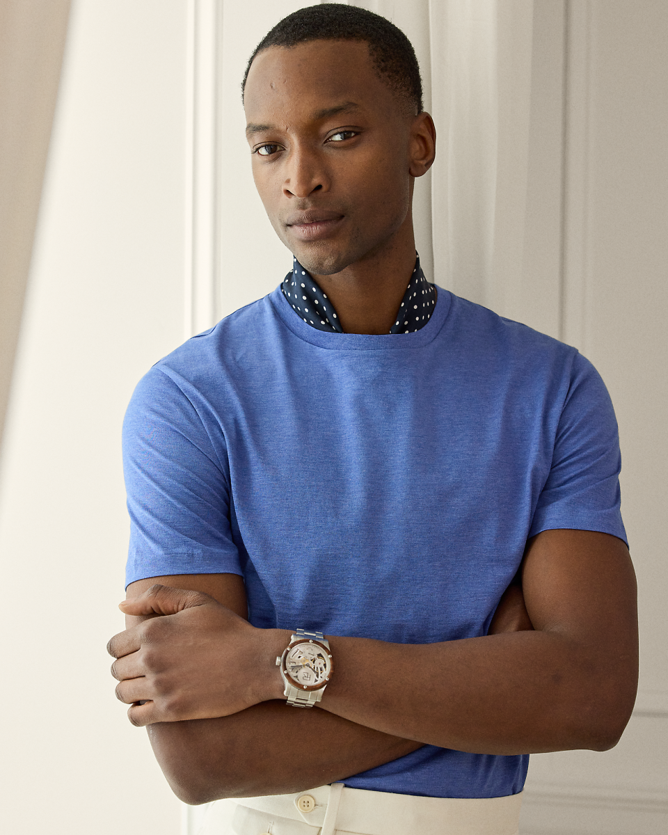 这款考究的 T 恤选用雅致的棉质莱尔线精心织就,是经典圆领廓形的全新演绎,内侧配有呈现 Purple Label 同名色调的罗缎饰边,饰有优雅的 Ralph Lauren 字样刺绣,彰显对标志性 Purple Label 细节的关注