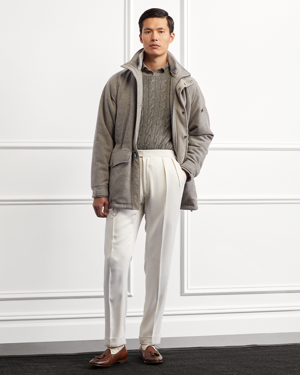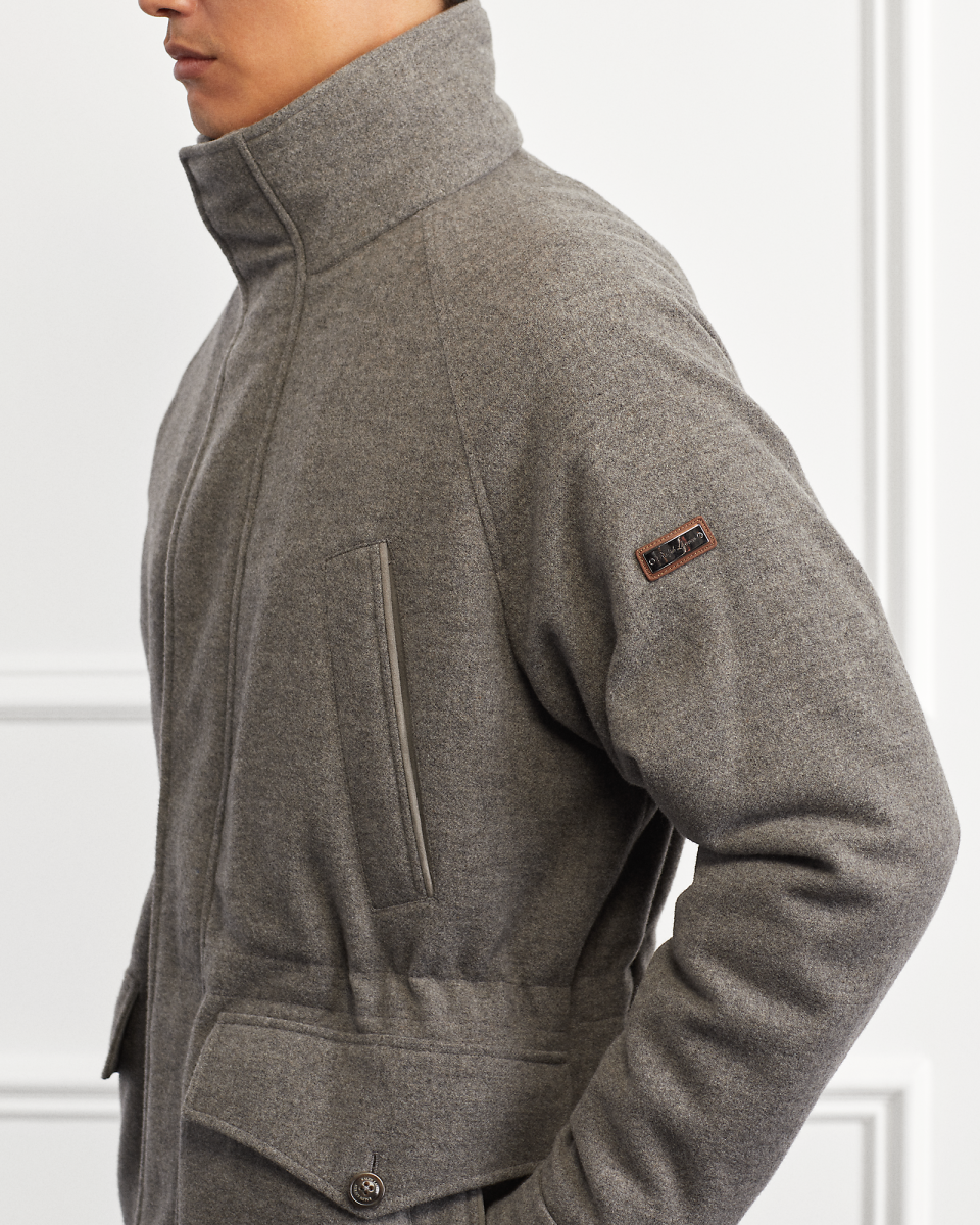 这款短款大衣属于 2022 年 Purple Label 秋季系列,选用舒适的面料制成,配有雅致的羊绒面革饰边,是对传统短款大衣的全新演绎。搭配角质纽扣,彰显考究质感