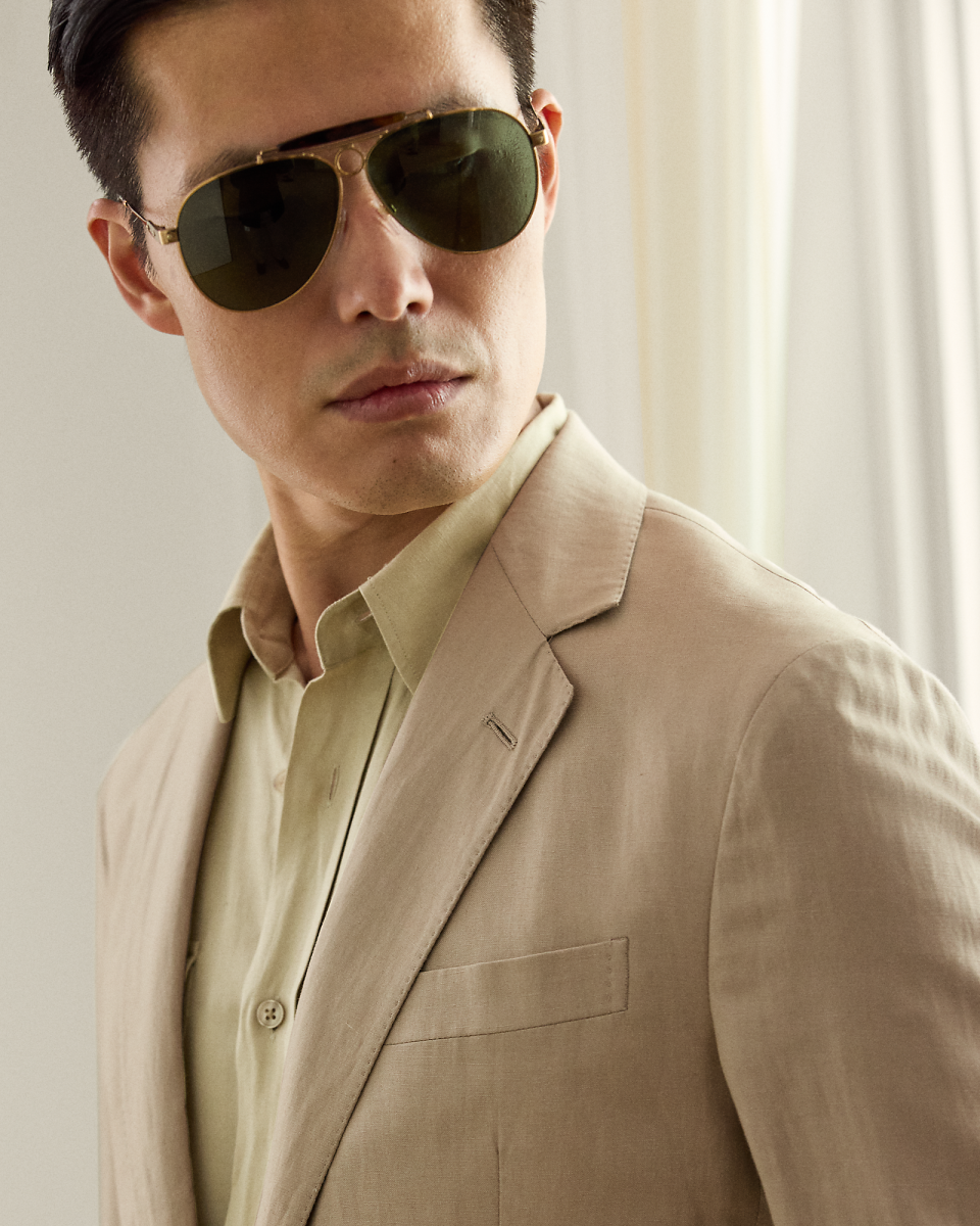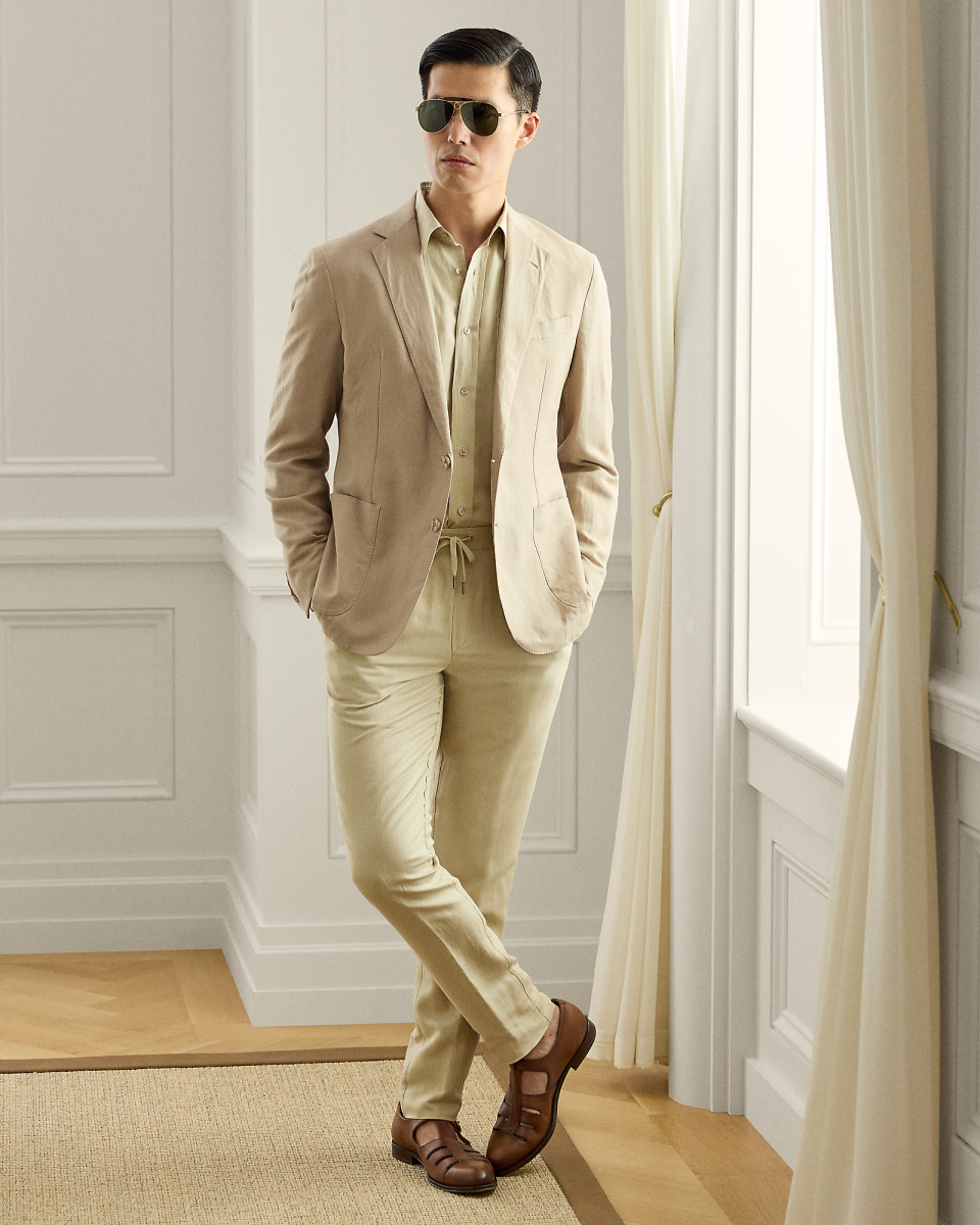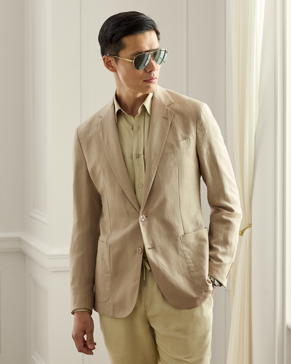 Hadley 系列于意大利制成,肩线柔和,质地轻盈,这款西装外套选用舒适的面料制成,该雅致面料专为 Ralph Lauren 研发,呈现考究的竹节纹理