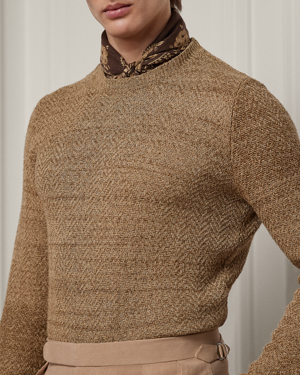 这款针织衫选用雅致的面料于意大利制成,以针织工艺焕新演绎本季 Purple Label 系列使用的梭织面料