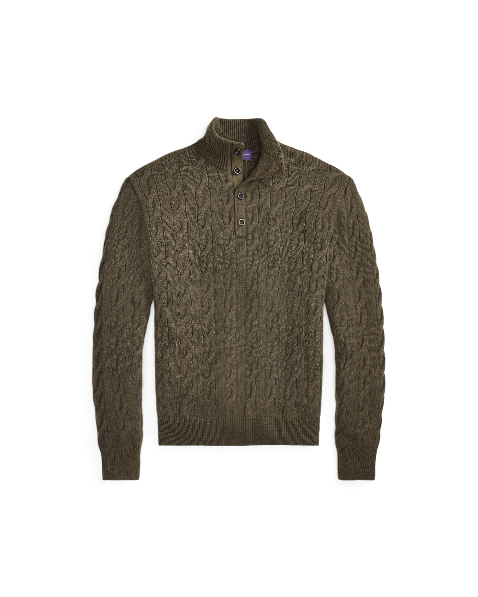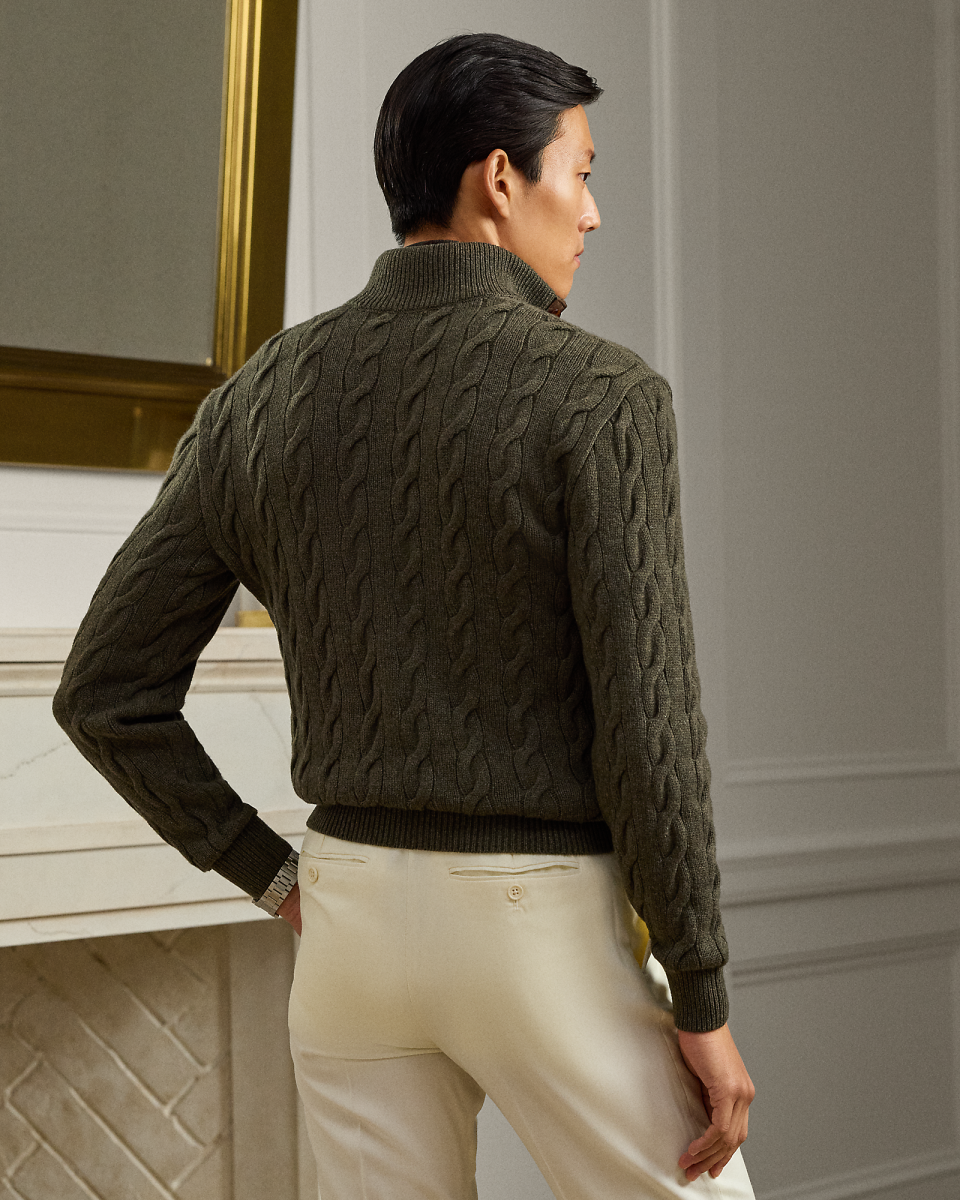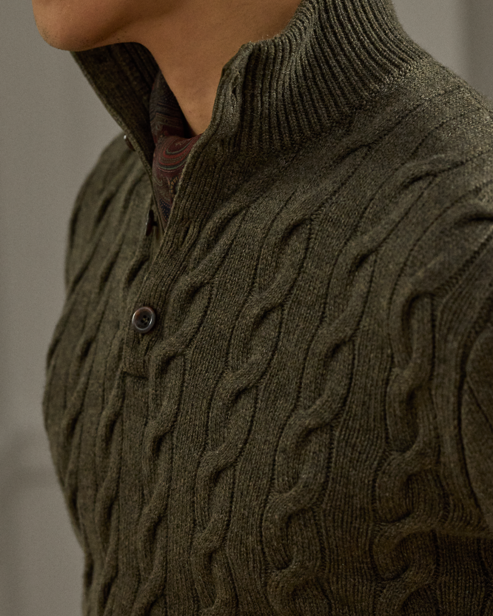 经典版绞花编结羊绒半高领针织毛衫