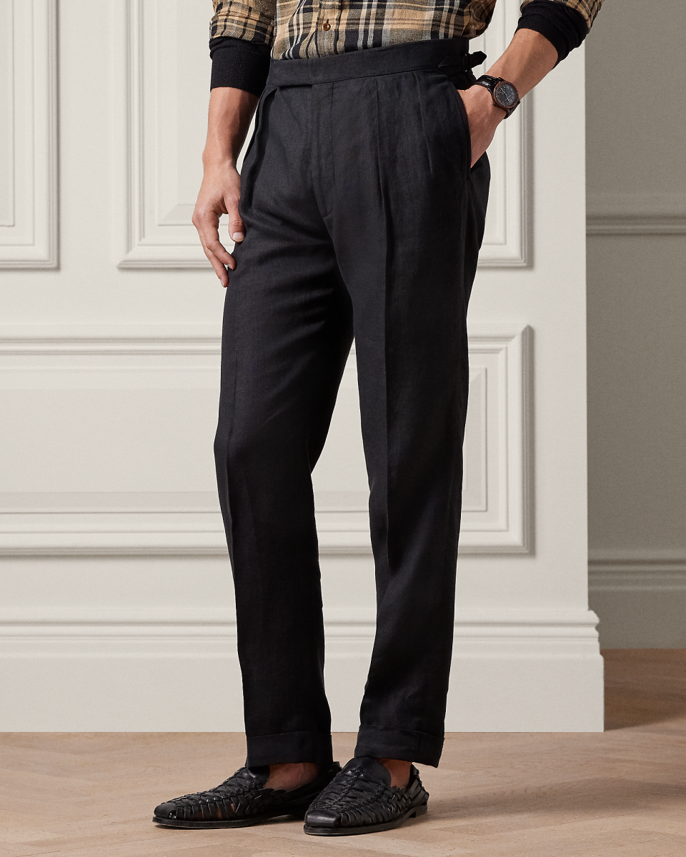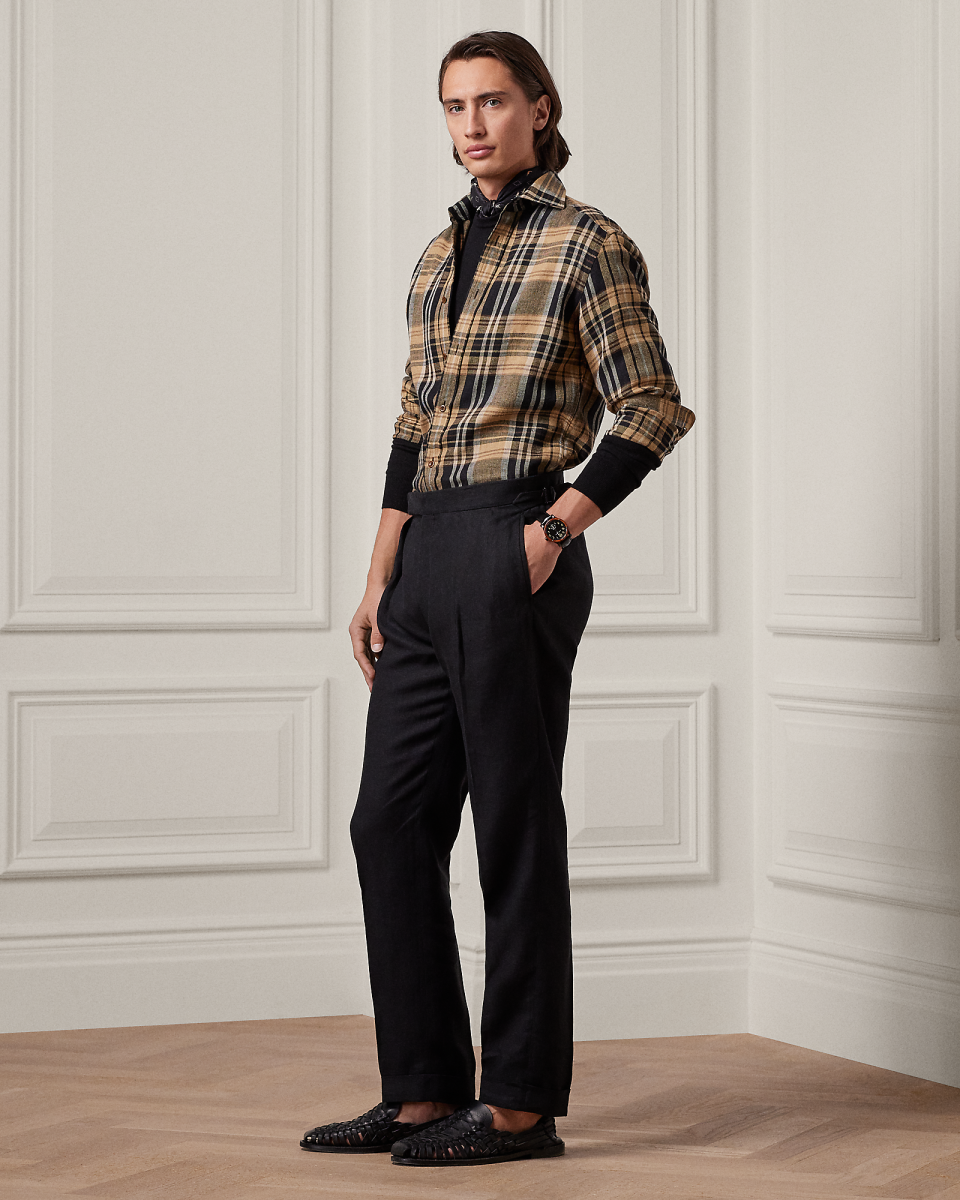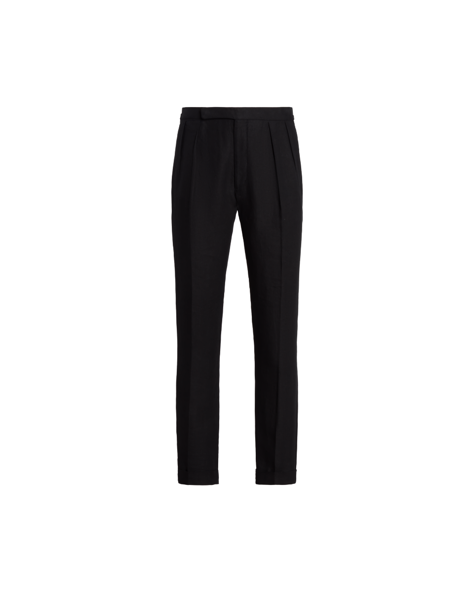 这款褶裥长裤选用轻盈的亚麻面料于意大利手工制成。该面料专为 Purple Label 研发且被 Lauren 先生亲自选中