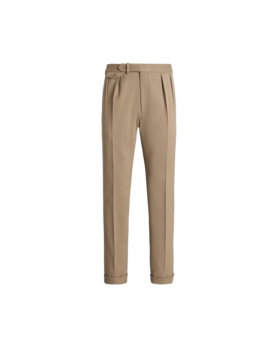 这款褶裥长裤选用专为 Ralph Lauren 研发的面料于意大利制成,彰显雅致质感,该复古风格斜纹马裤呢面料原用于户外成衣,经定制研发,兼具轻盈质地和优美的垂坠感