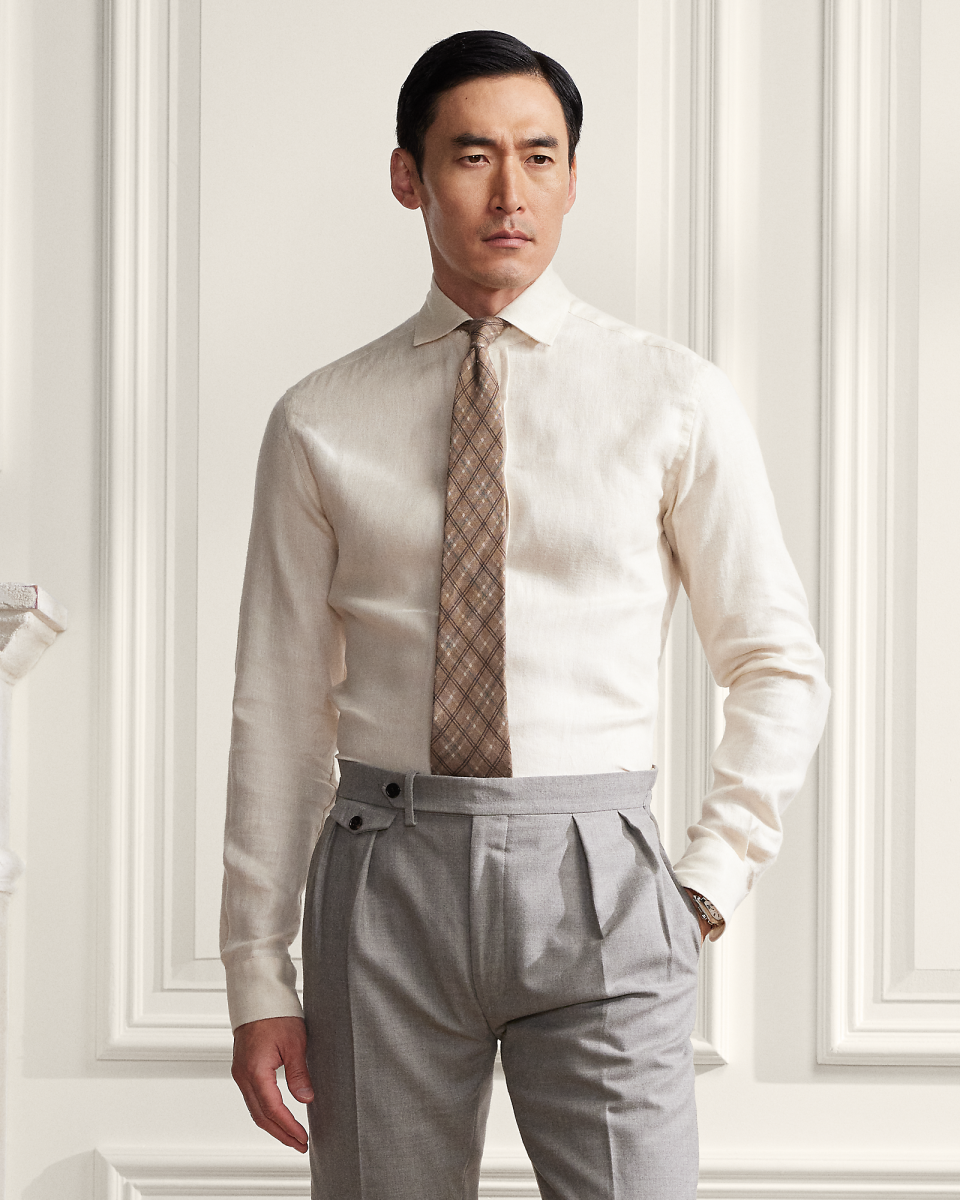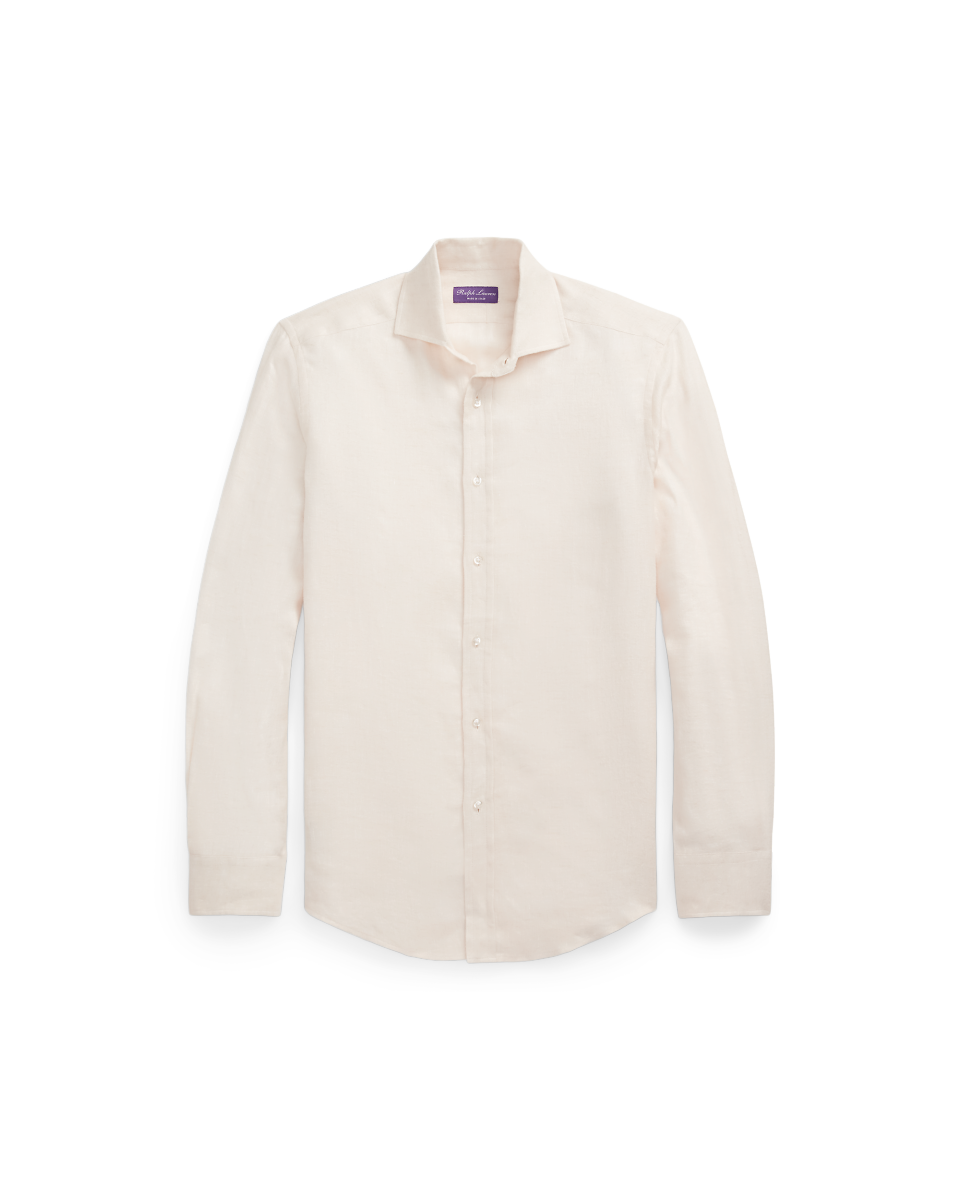 这款 Purple Label 衬衫选用轻盈透气的亚麻面料制成,经考究的磨毛处理,呈现非常柔软的质地,搭配珠母贝纽扣
