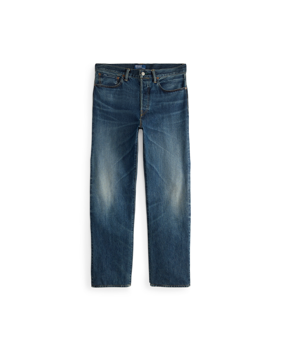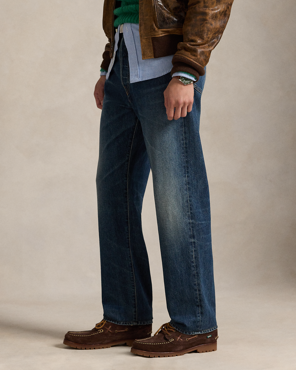 这款复古风格直筒版型牛仔裤采用低裆设计,搭配直筒裤腿,选用以纱线织就的无弹力牛仔布制成,经久实用,穿着舒适
