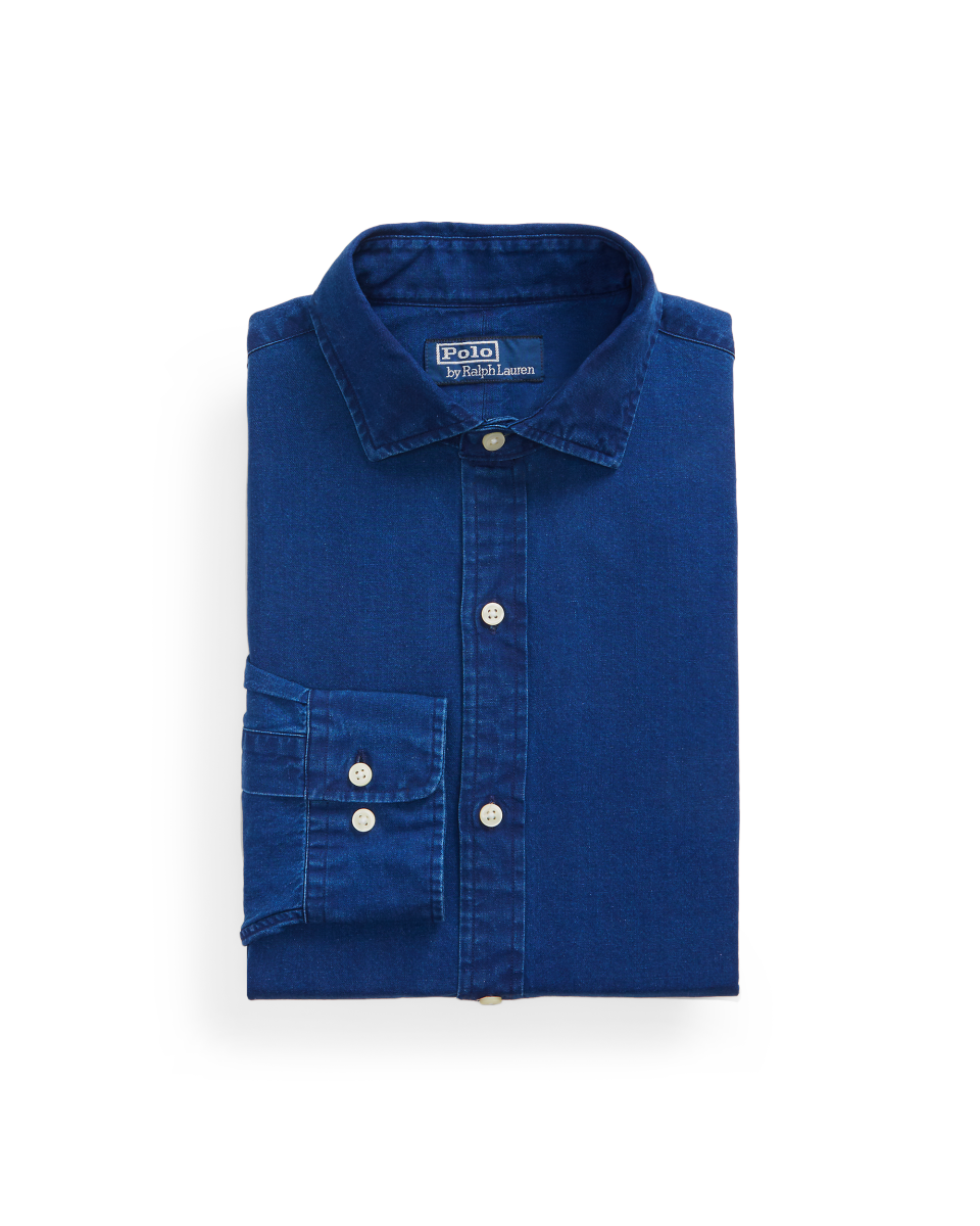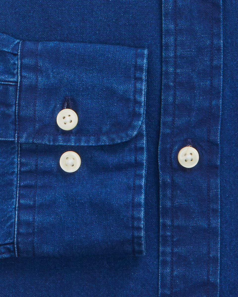 这款修身版型衬衫采用深靛蓝染色,左侧袖口饰有我们的标志性小马刺绣