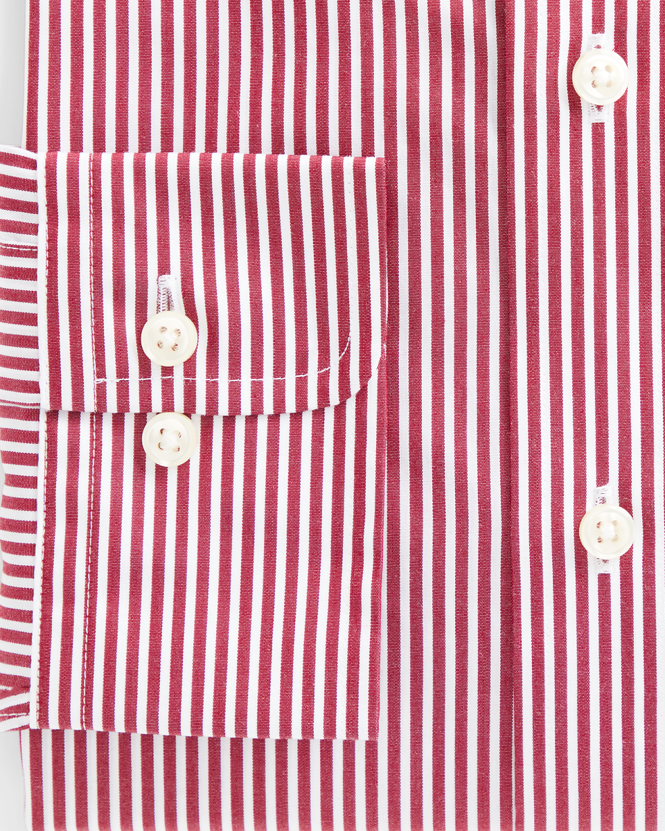 这款衬衫所用的棉质面料经过包括高压纺纱在内的多道工序处理,略带弹力