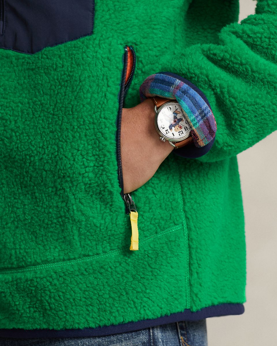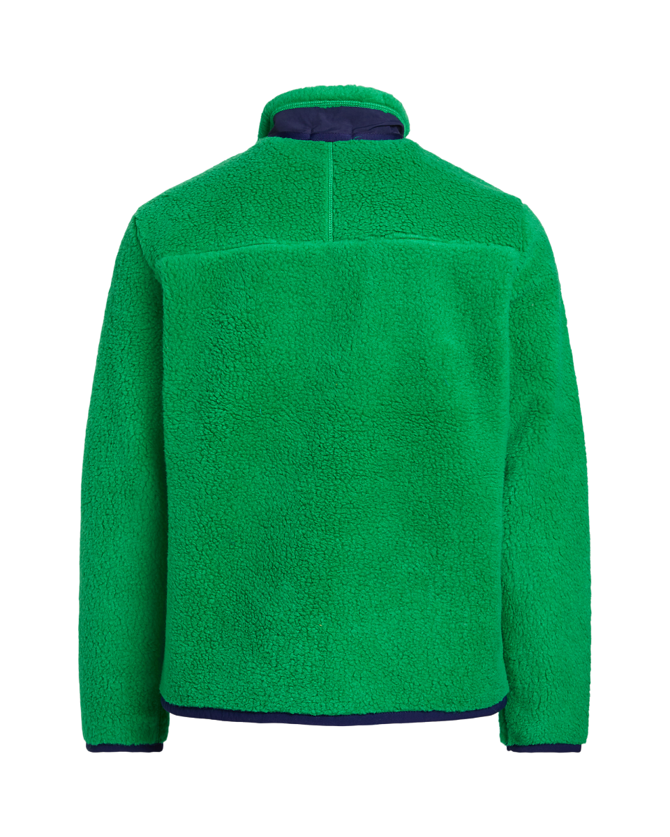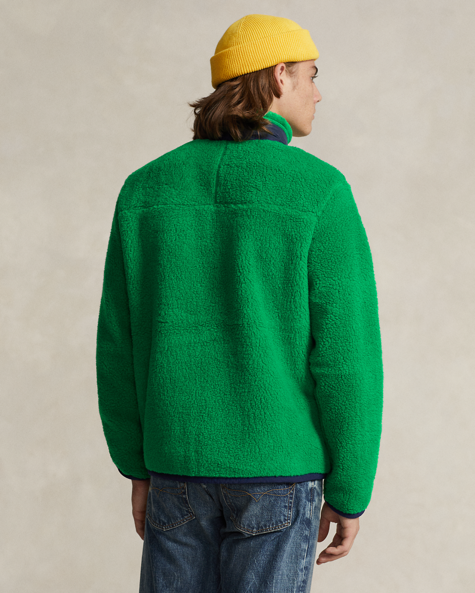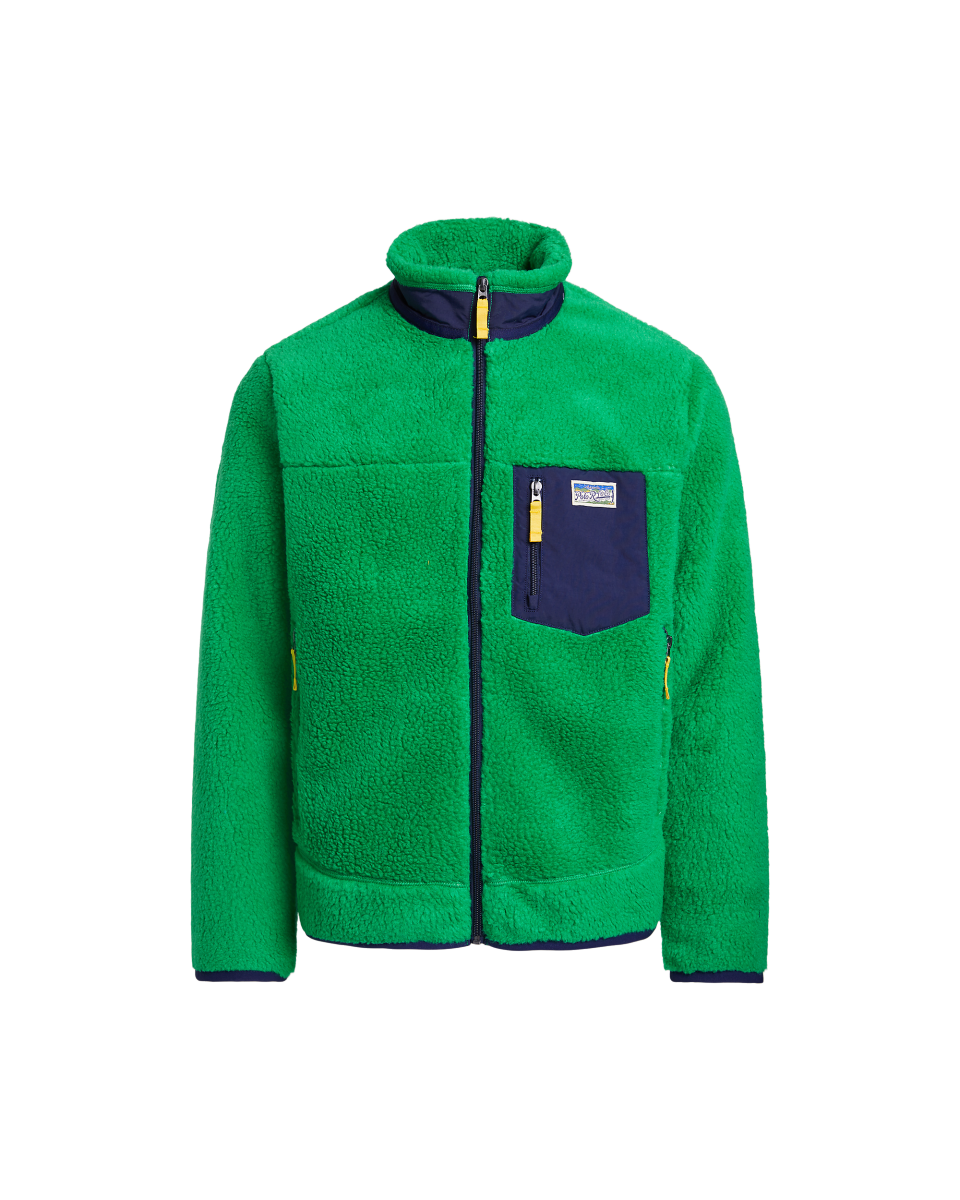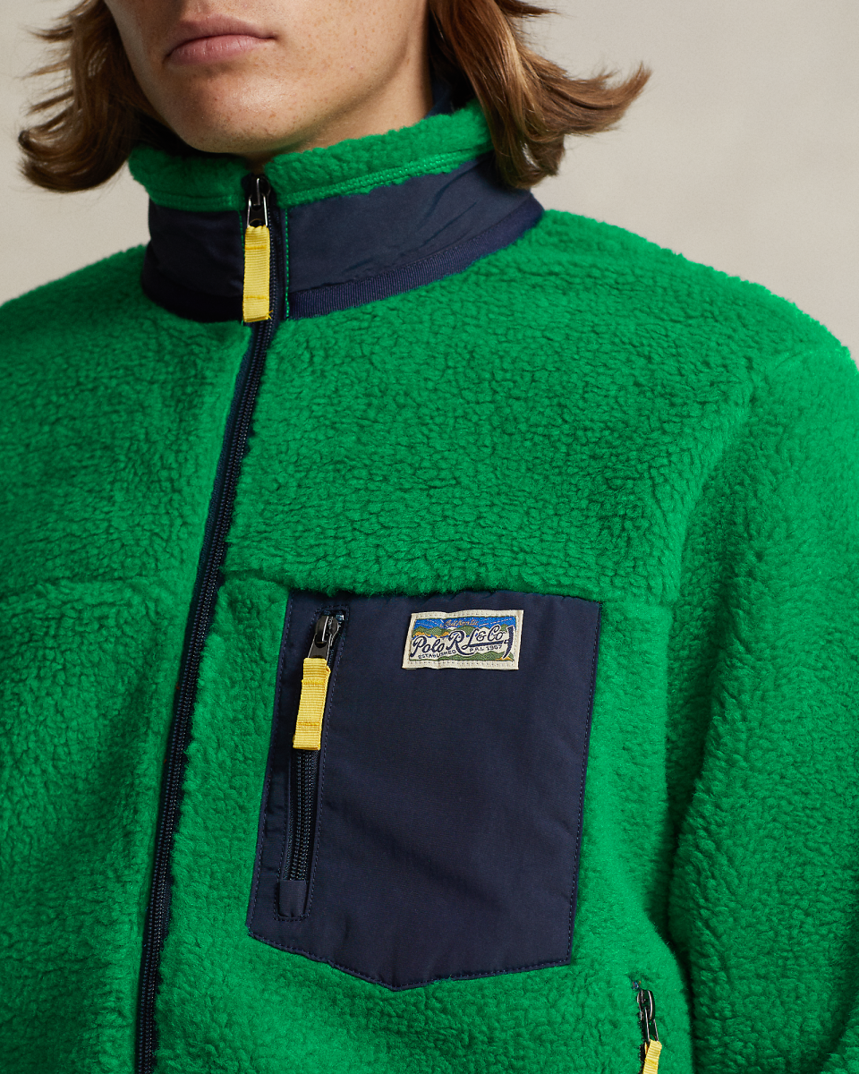 这款舒适的夹克选用粘合长毛绒起绒布制成,配有光滑的梭织饰边,呈现户外风格造型