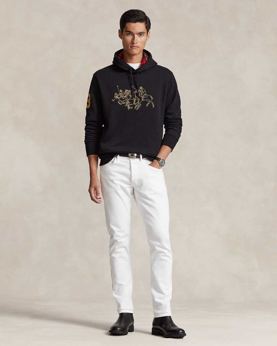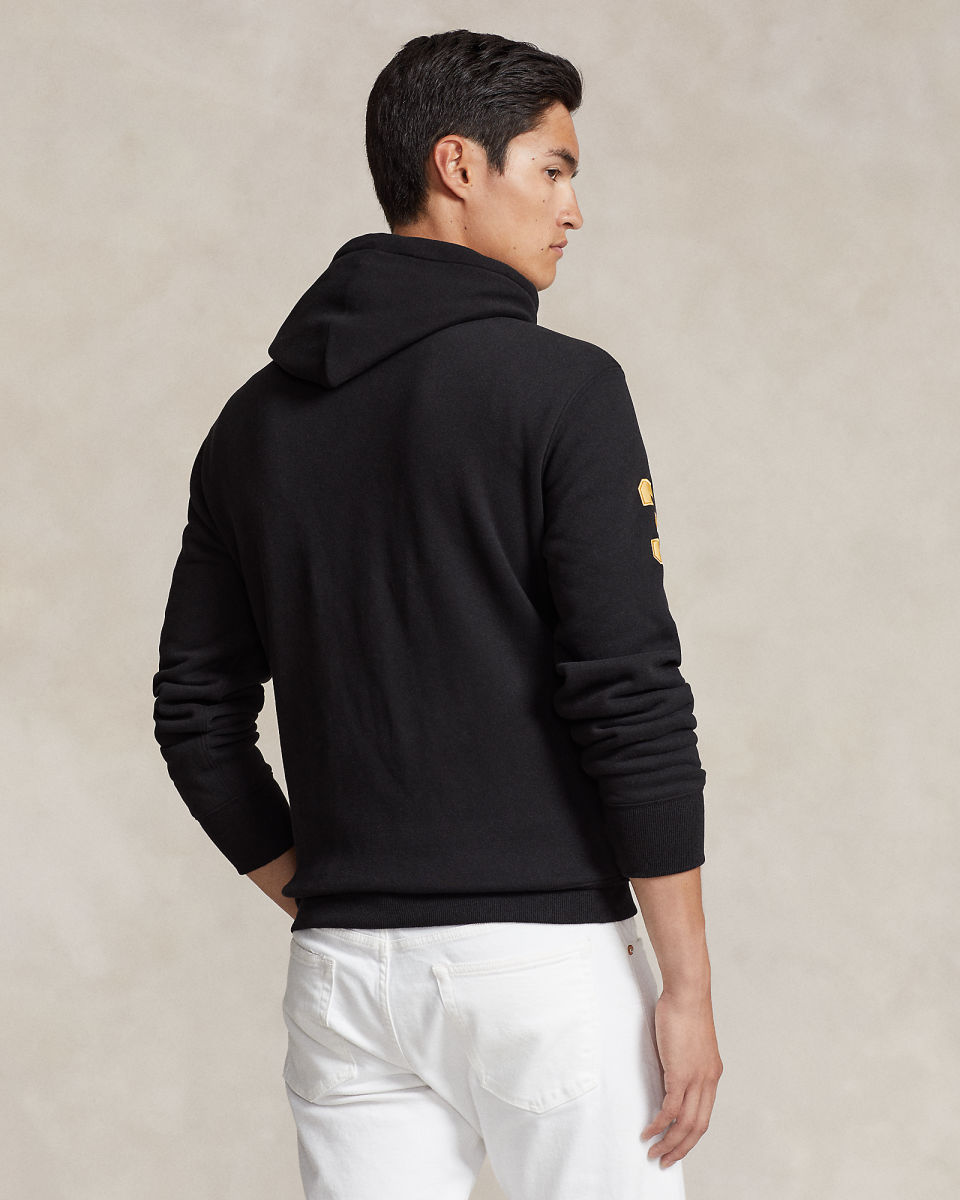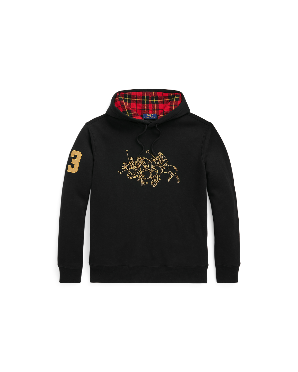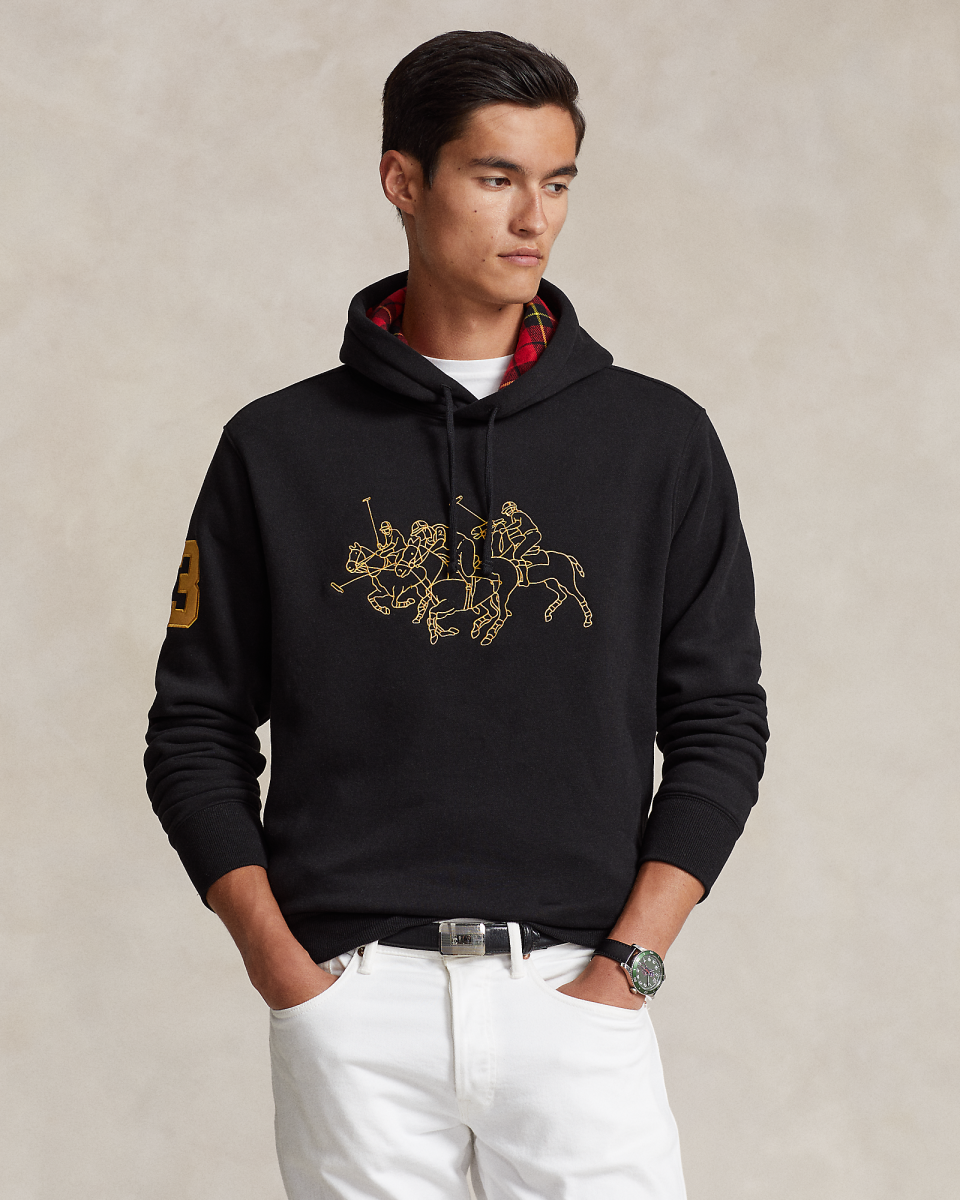 这款重磅起绒布连帽衫专为庆祝新年设计,饰有我们的标志性三匹小马徽标,以及马球队实力强劲选手所佩戴的数字 3 补片