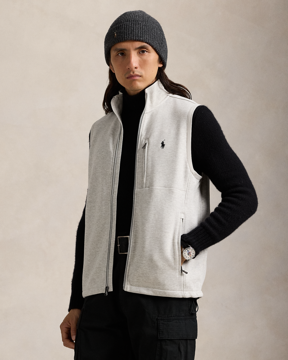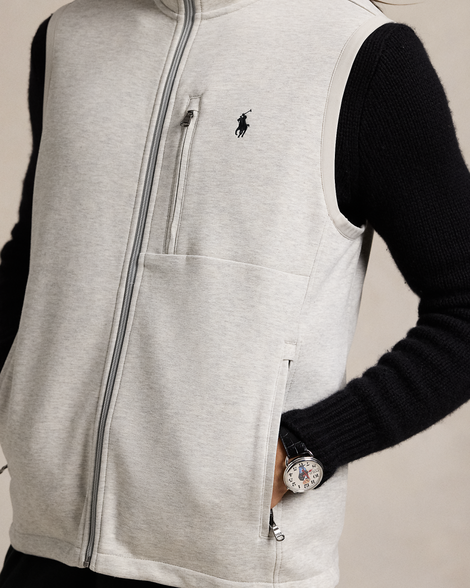 这款马甲选用顺滑的面料制成,胸前饰有标志性小马刺绣