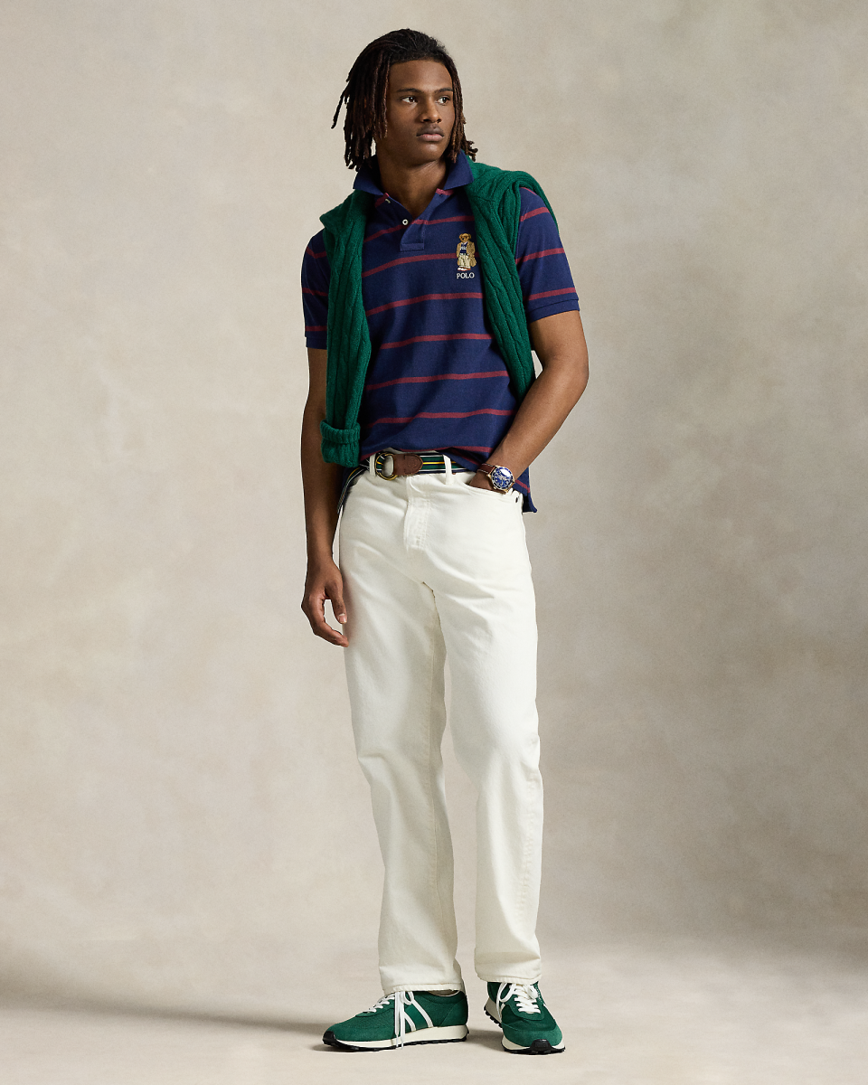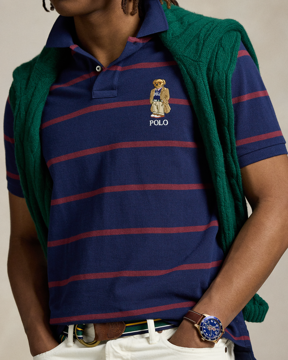 自 1972 年起,Polo 衫就是美式风格的代表,几十年来,Ralph Lauren 通过改变颜色和版型,重新演绎其经典的风格,而质量和对细节的关注仍保持不变,这款条纹 Polo 衫饰有衣着考究的可爱学院风小熊,小熊身穿 Polo 字样套头衫,佩戴玳瑁眼镜