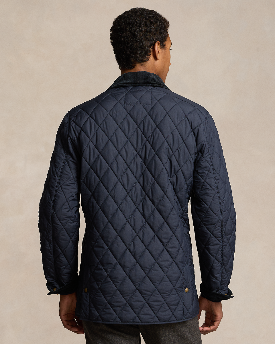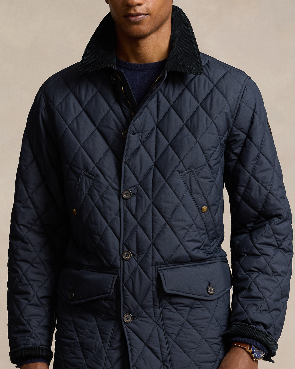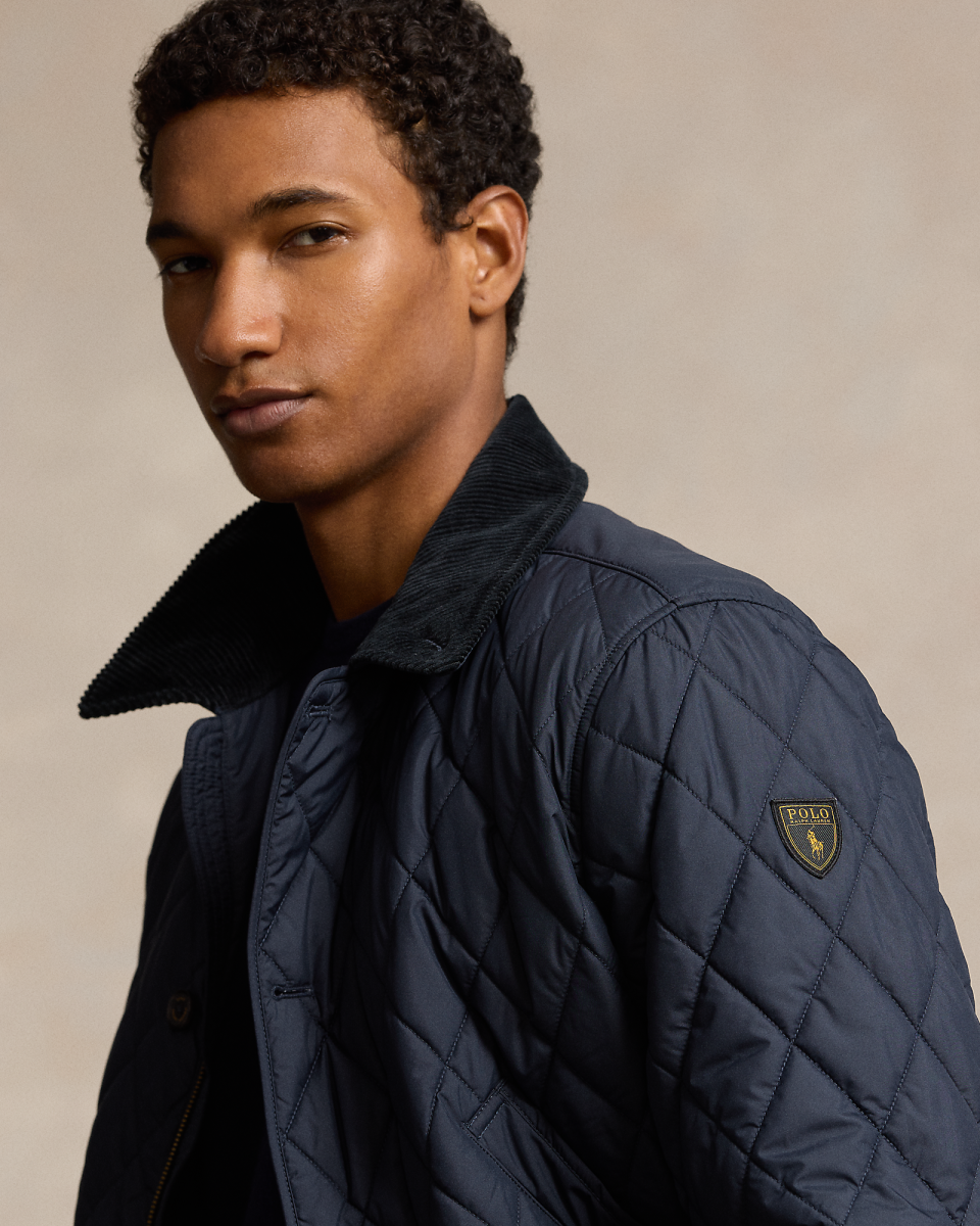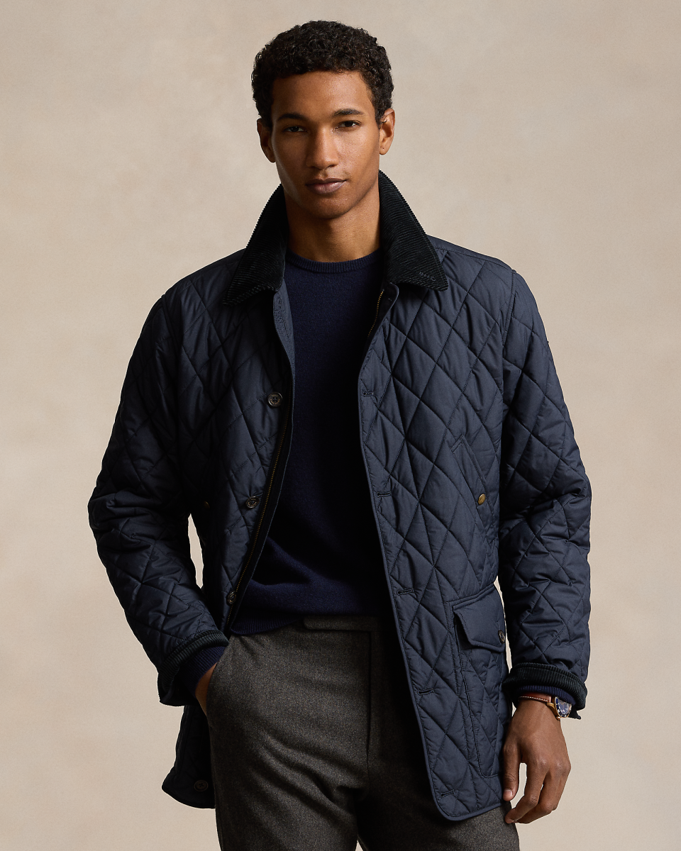 这款大衣选用防沾水塔夫绸面料制成,配有灯芯绒饰边,是经典短大衣的全新升级