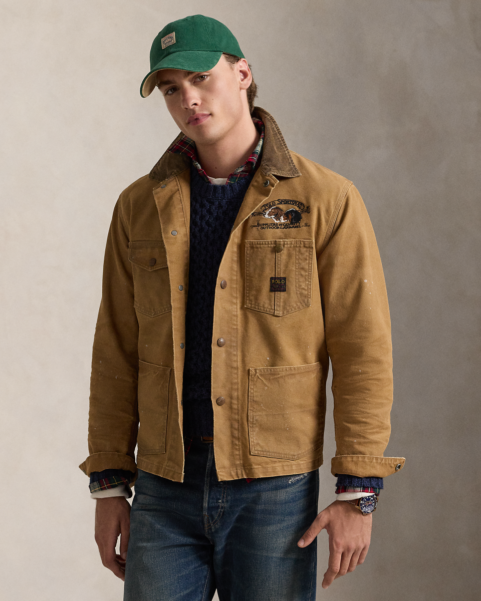 这款实用夹克选用一家工厂的棉质面料制成,胸前左侧饰有复古风格 Polo Sportsman 字样图案刺绣