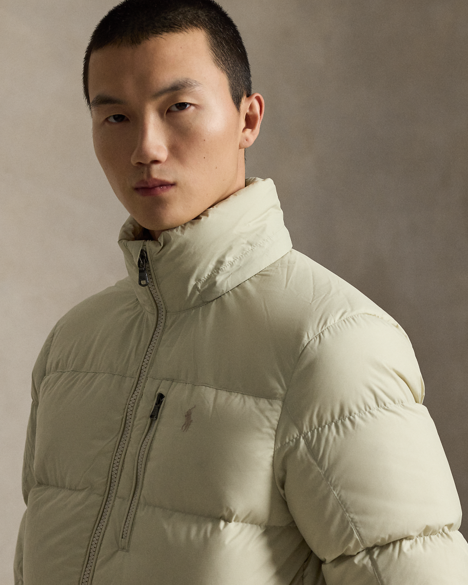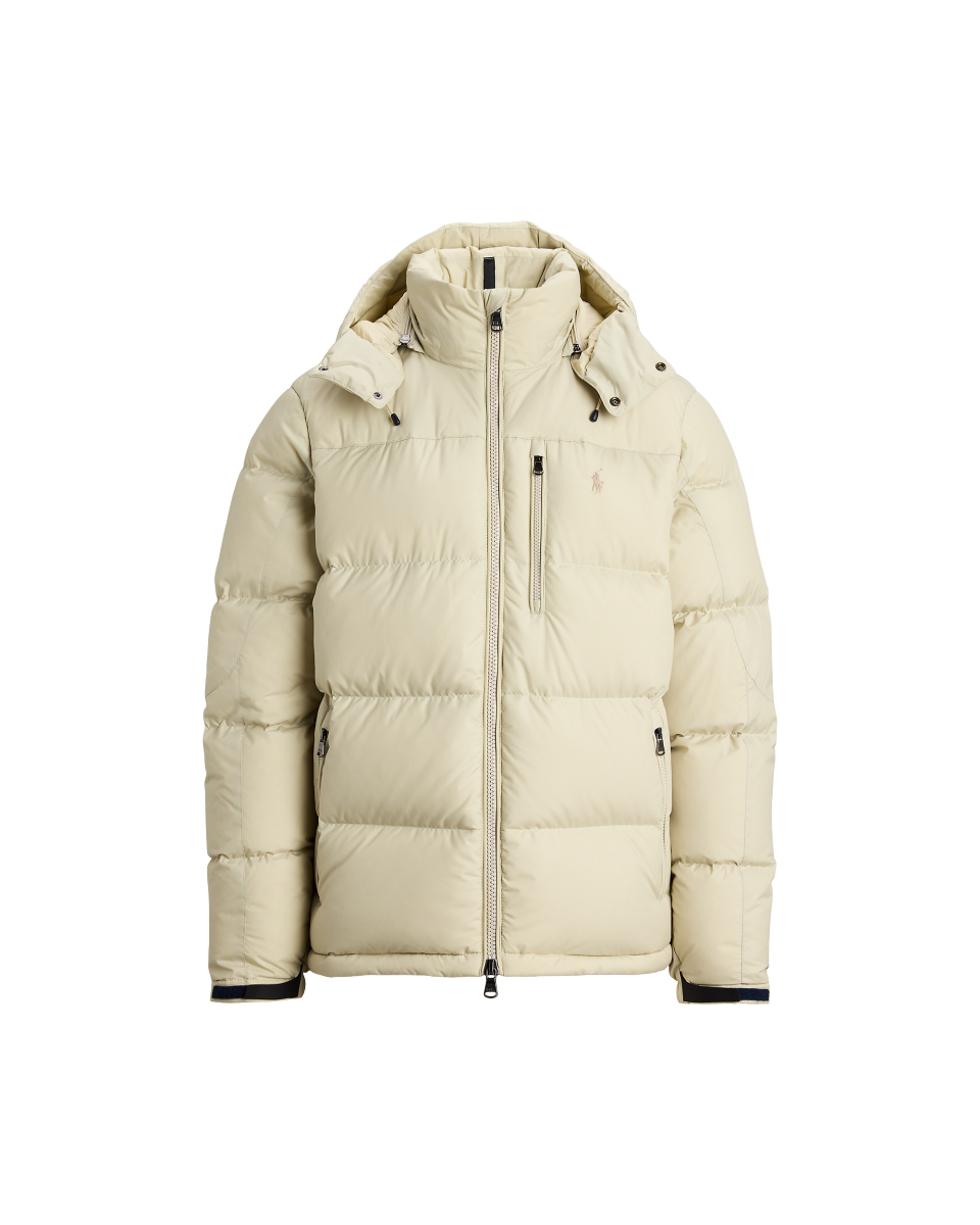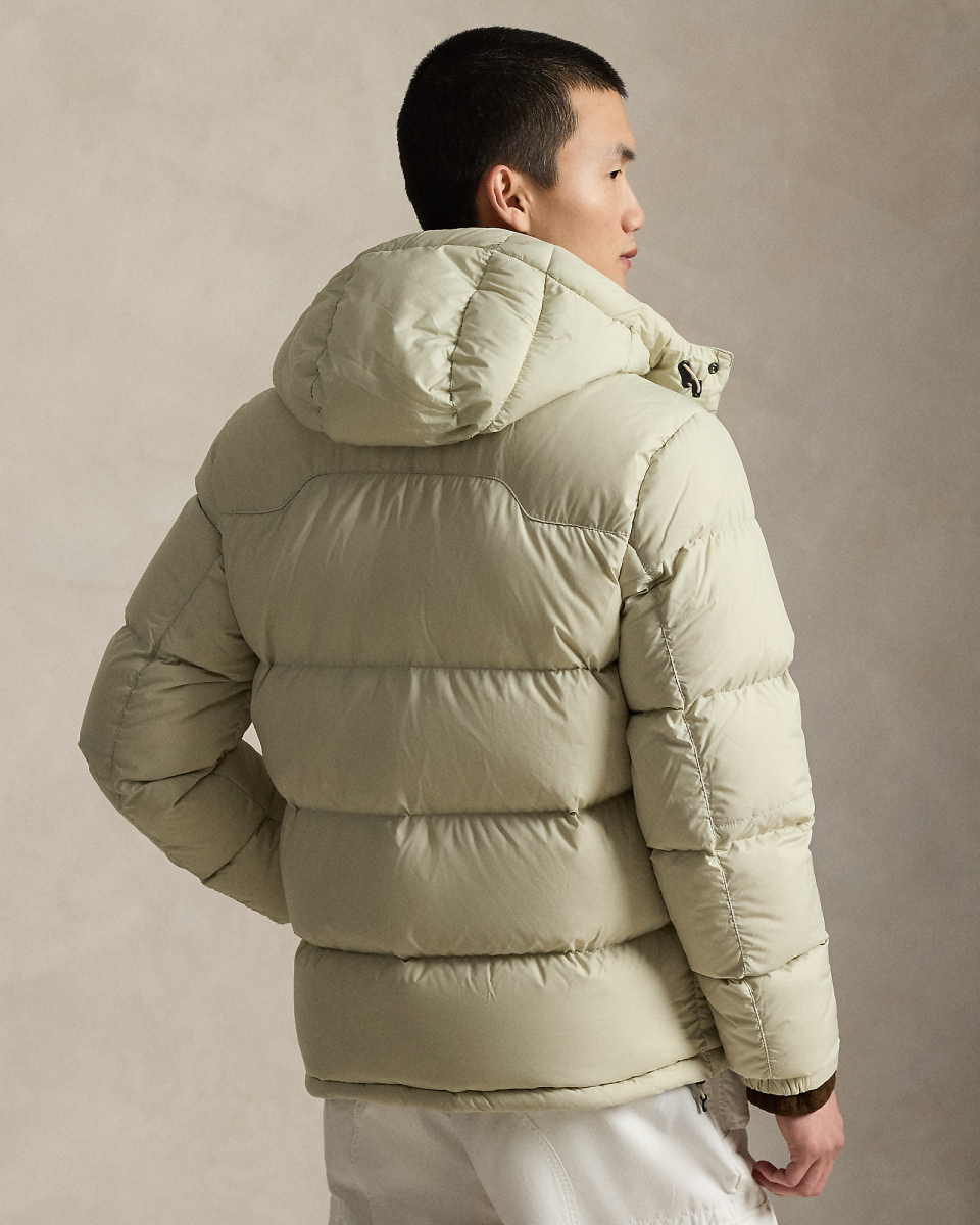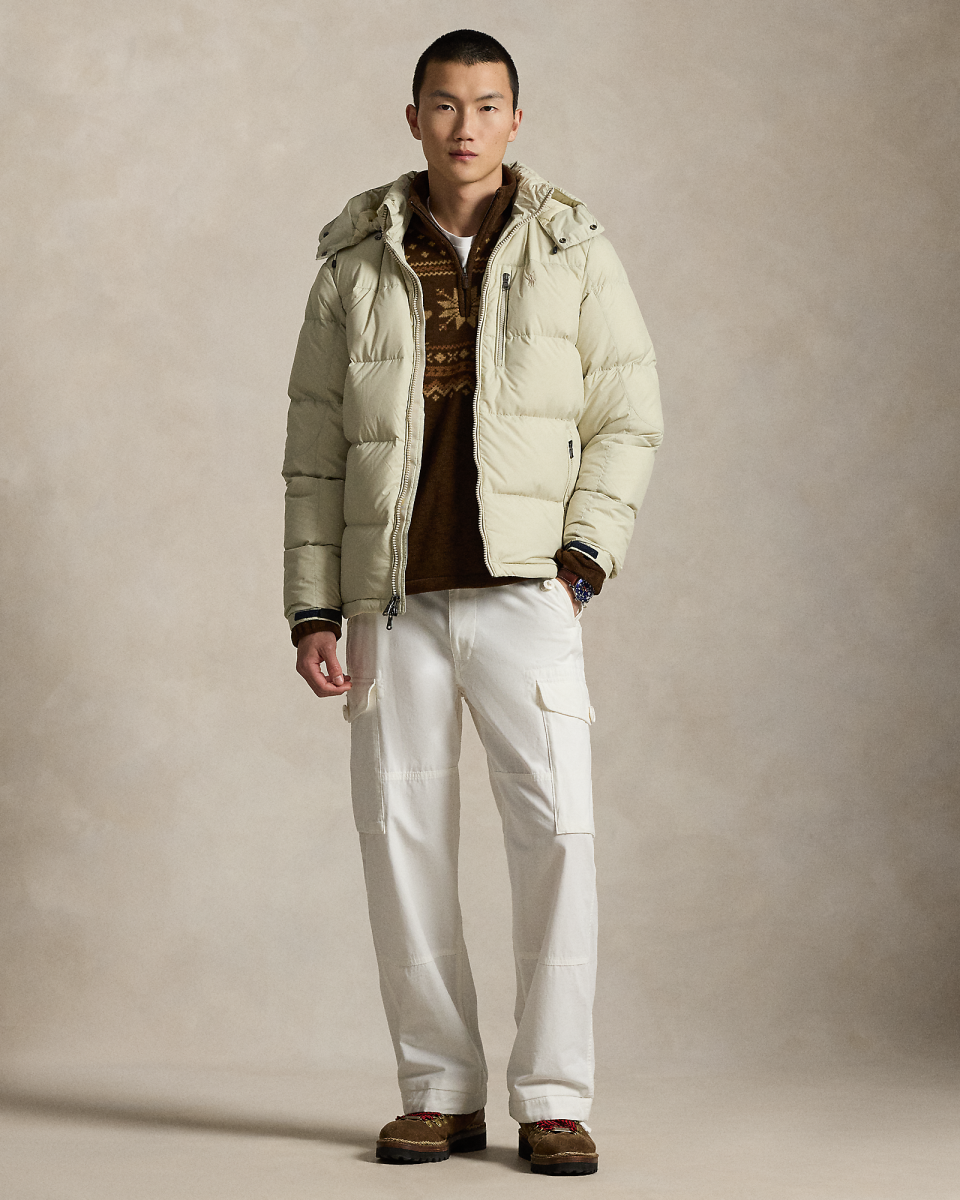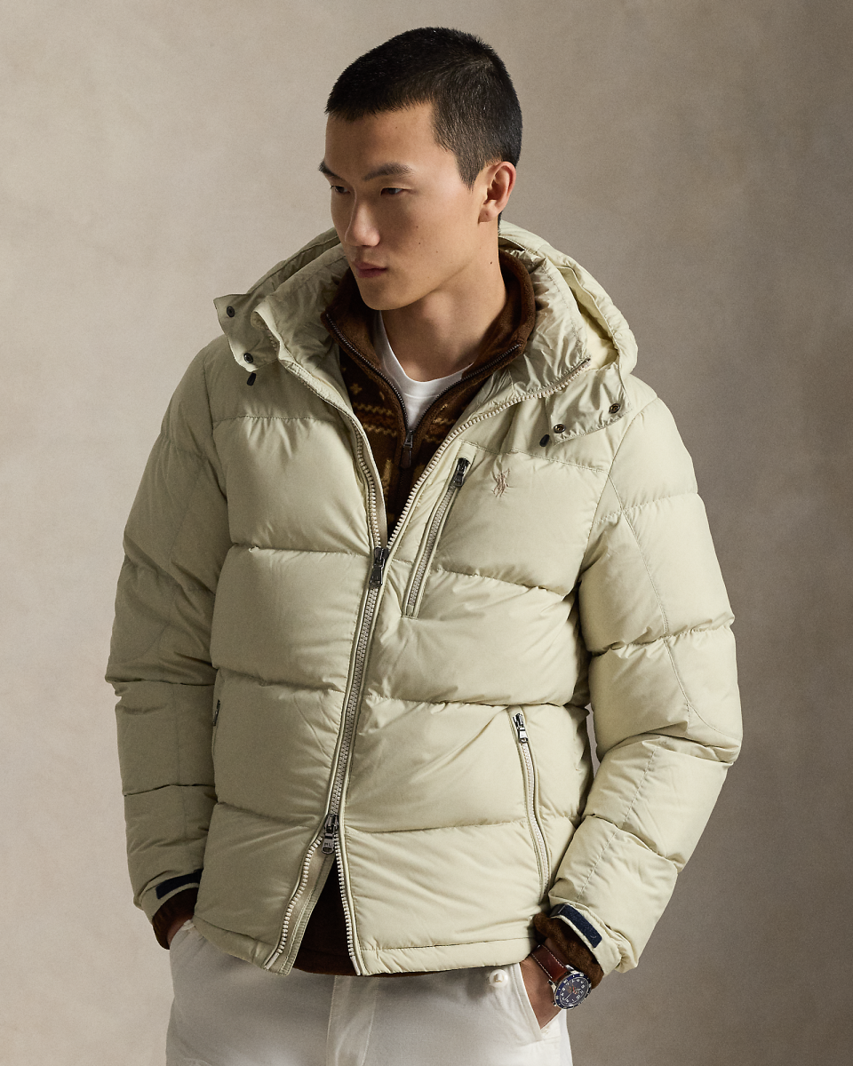 这款夹克选用防沾水面料制成,填充蓬松度为 650 的羽绒,搭配可拆卸风帽