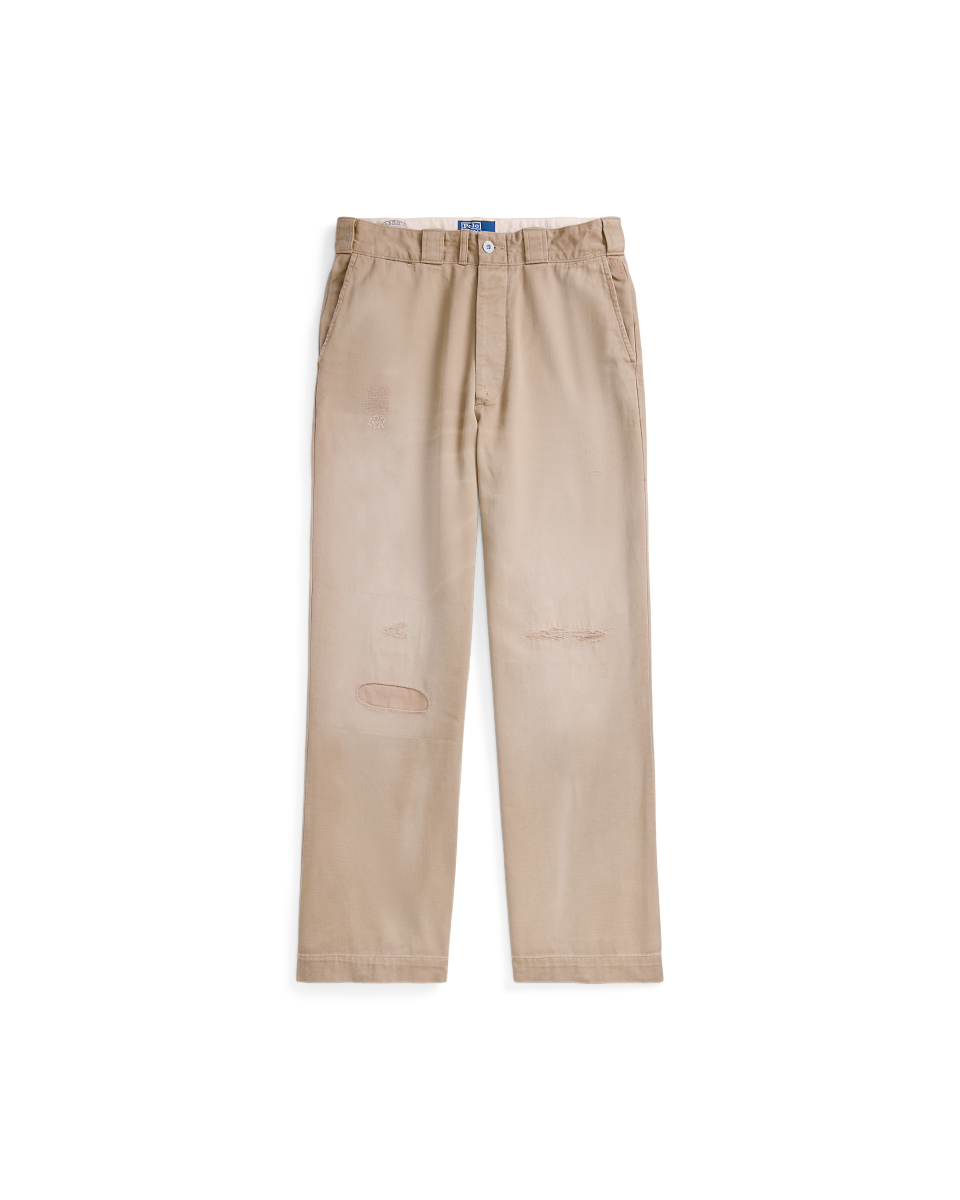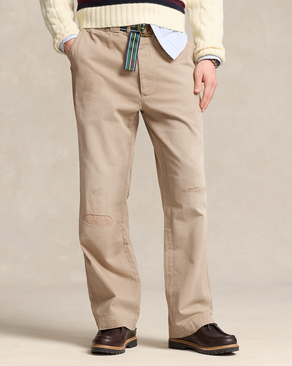 这款轻盈的棉质长裤采用源自 90 年代的标志性宽大版型,配有加宽腰带环,略呈立体质感,颇具航海复古气息,配有复古细节;采用 Sanforized® 预缩处理,尽可能减轻缩水情况