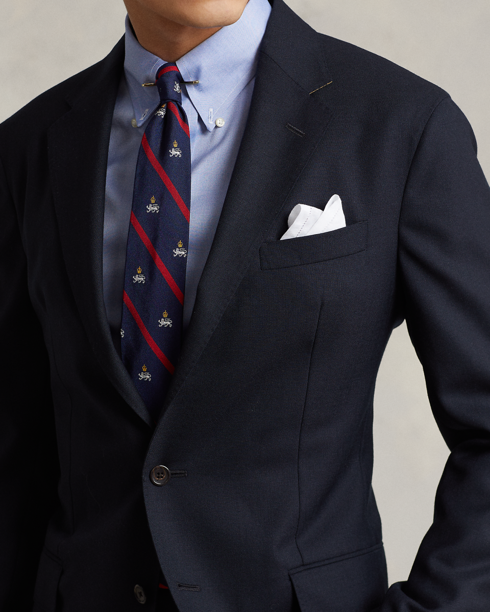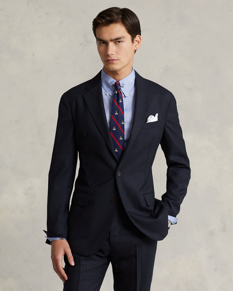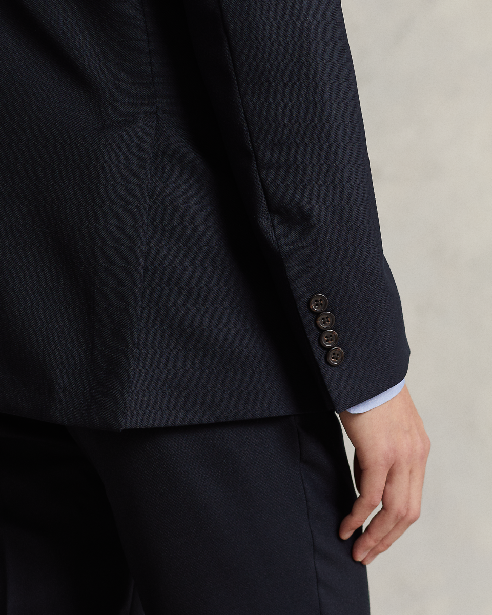 这款 Polo Soft 西装外套选用透气防皱的轻薄羊毛牛津布剪裁而成,采用自然肩型和半手工构造,是对经典学院风格的现代演绎