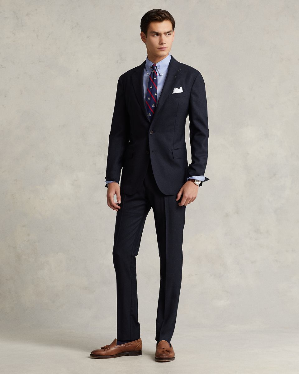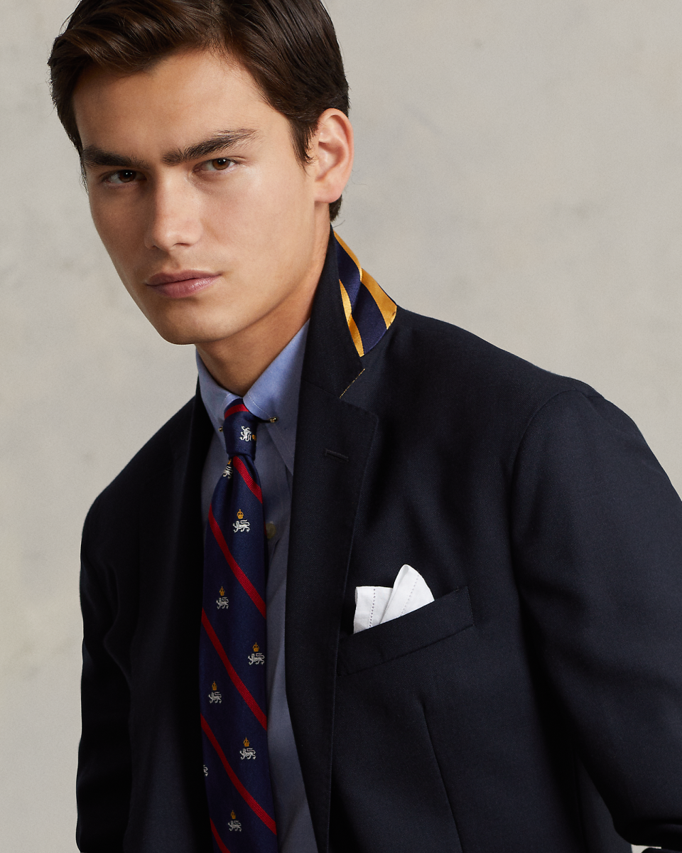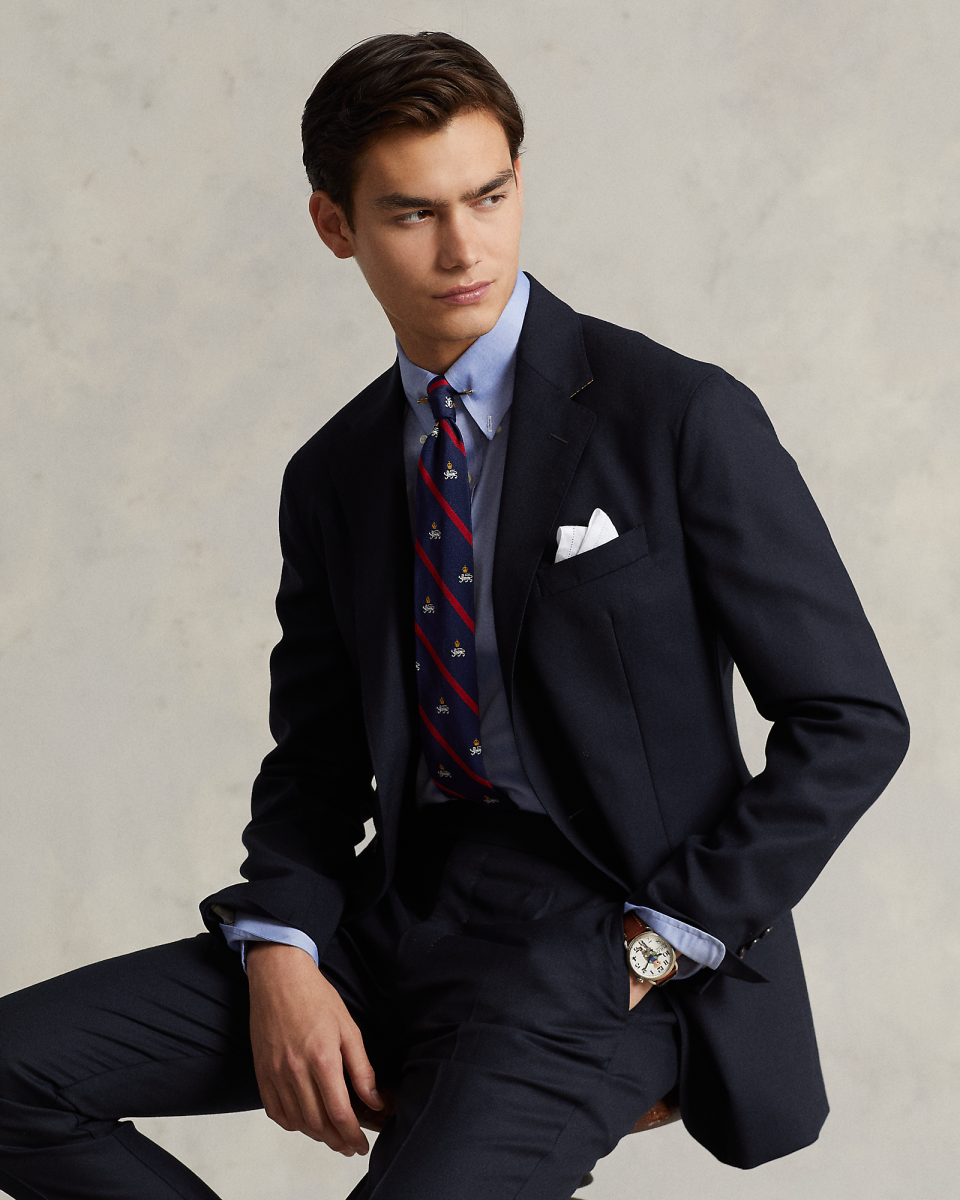 这款 Polo Soft 西装外套选用透气防皱的轻薄羊毛牛津布剪裁而成,采用自然肩型和半手工构造,是对经典学院风格的现代演绎