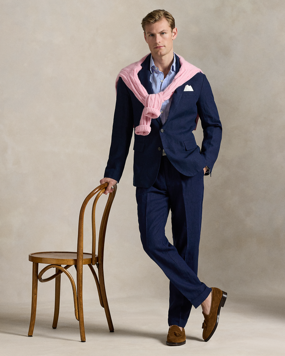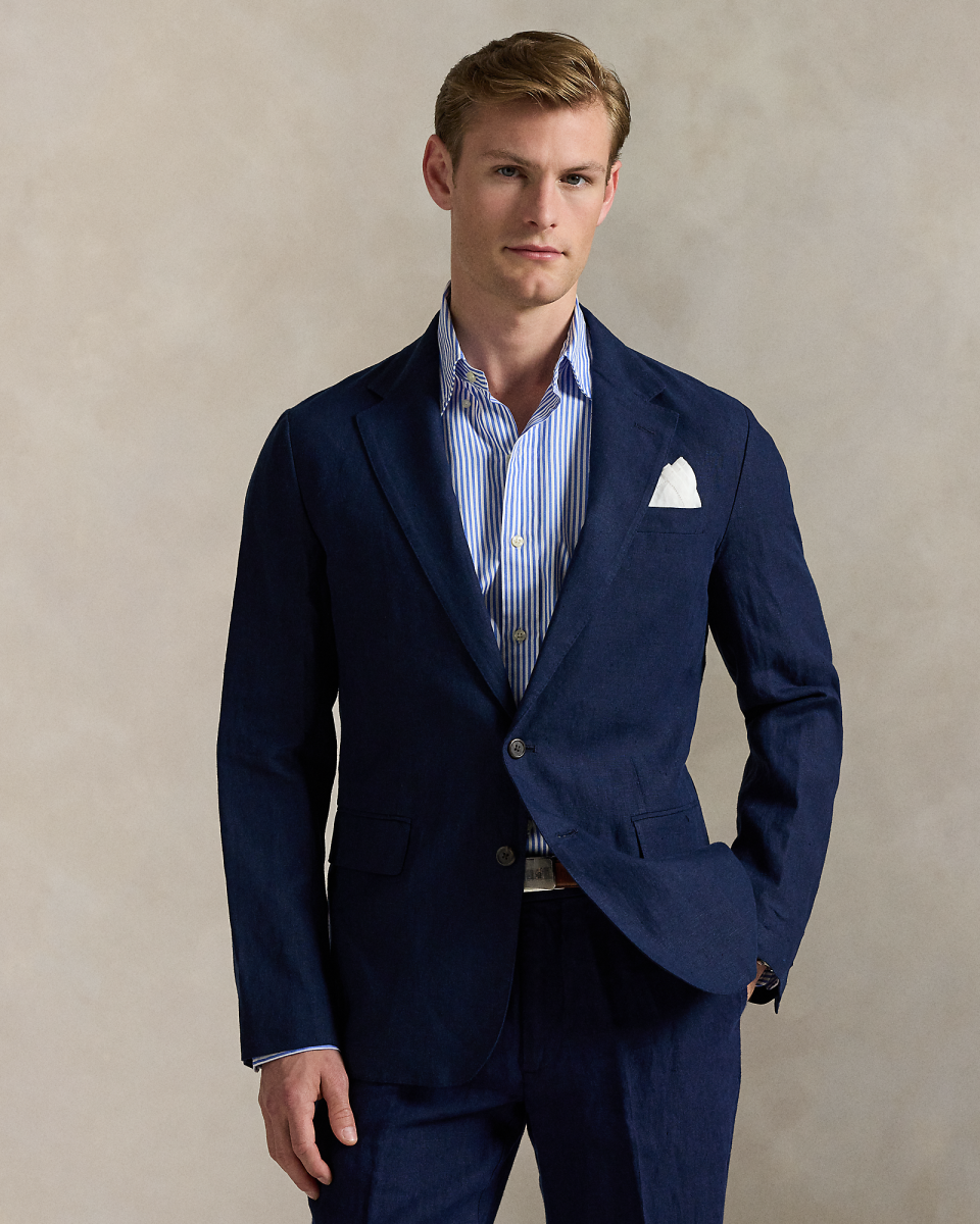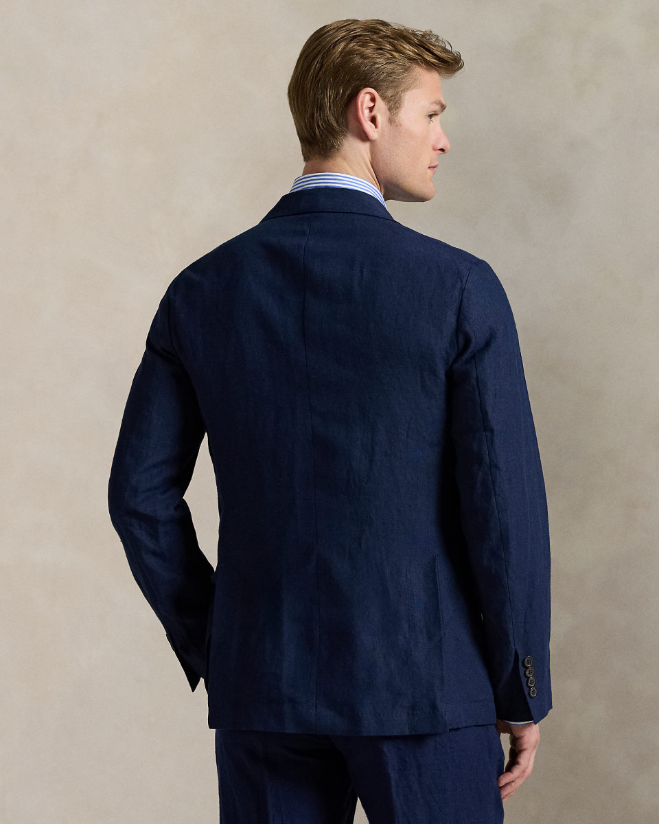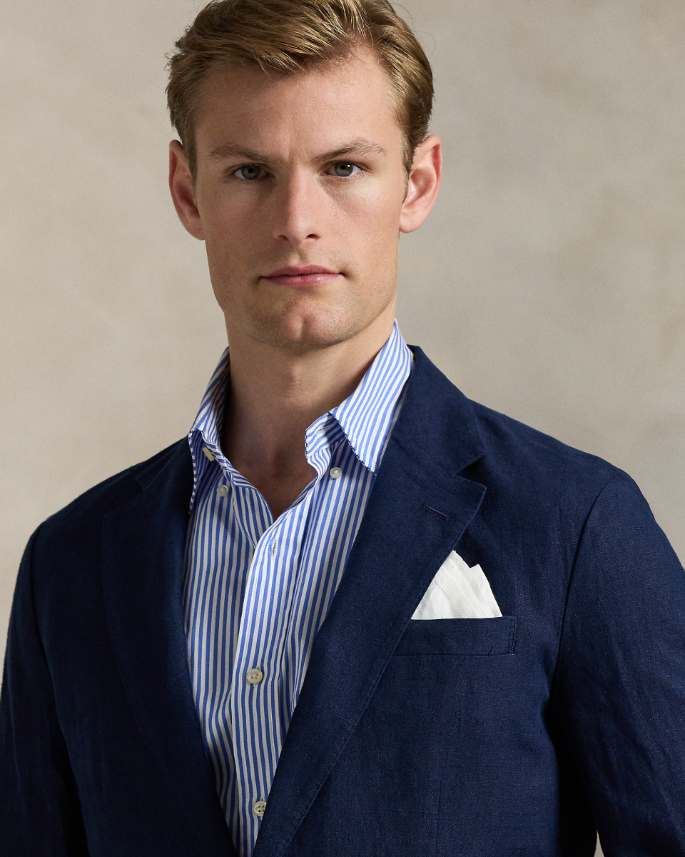 Polo Soft 西装外套以现代视角焕新演绎经典学院风格,采用自然肩型,胸部略呈立体感,带部分衬里,这款外套选用轻盈的亚麻面料制成,该面料专为 Ralph Lauren 研发