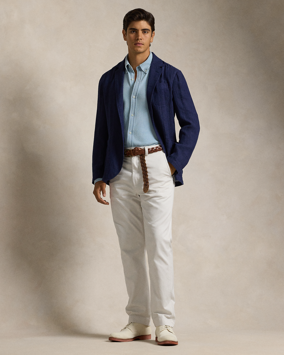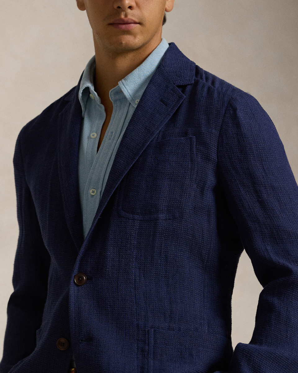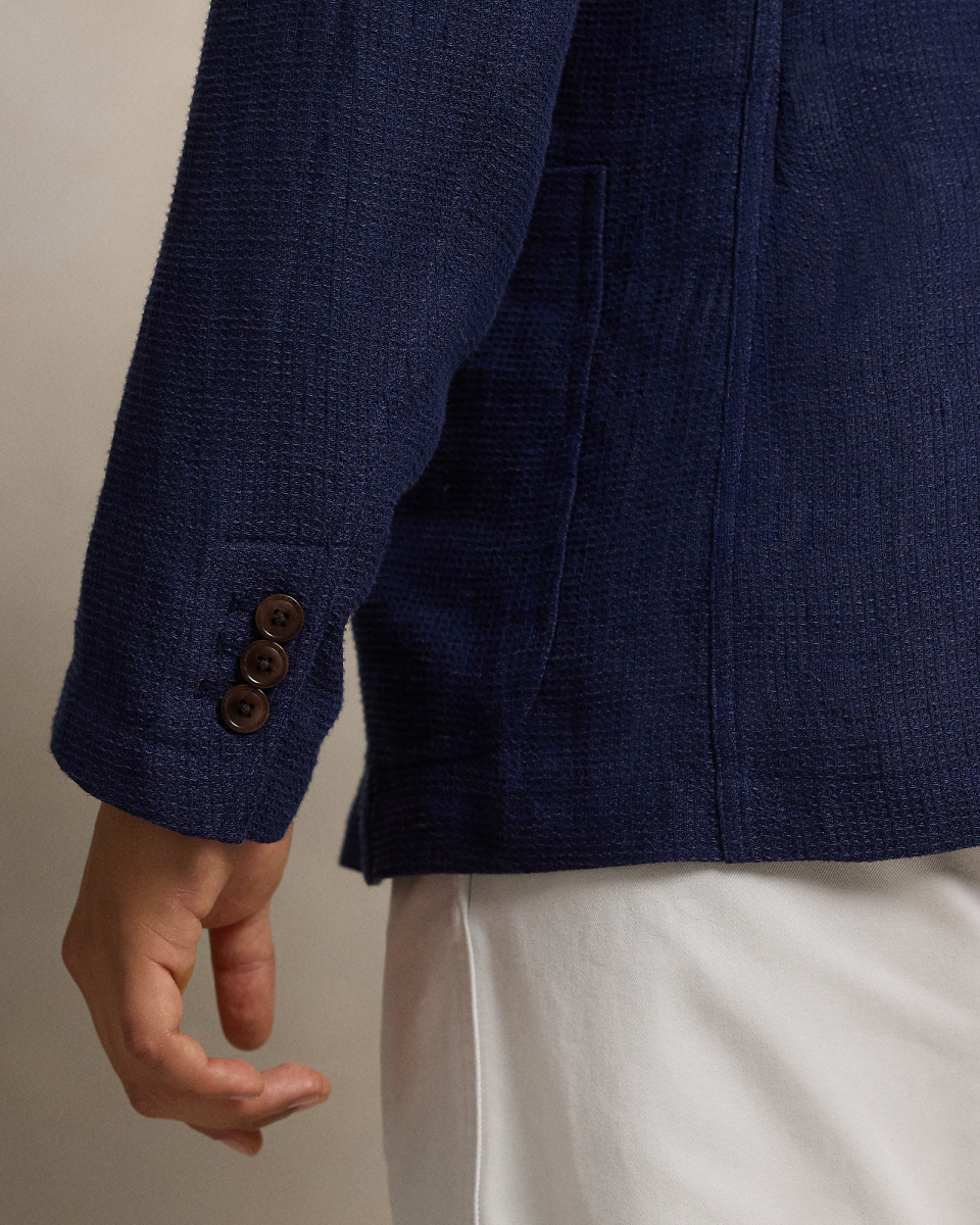 这款无肩垫外套选用带有华夫格纹理的亚麻面料制成