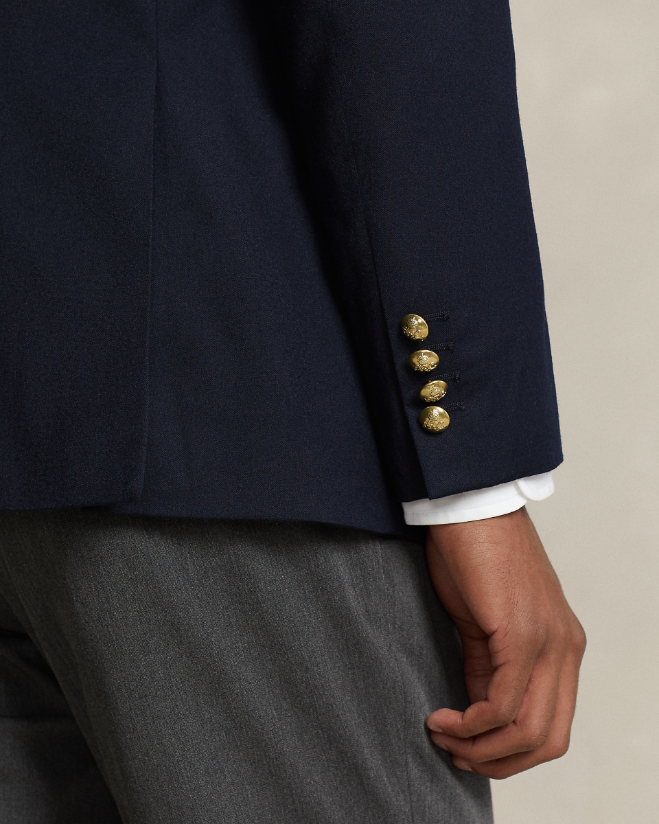 Polo Classic 版型:Polo 新推出的定制版型之一,采用宽松版型和自然肩型,搭配挑缝线迹翻领,这款西装外套选用专为 Ralph Lauren 研发的华达呢制成