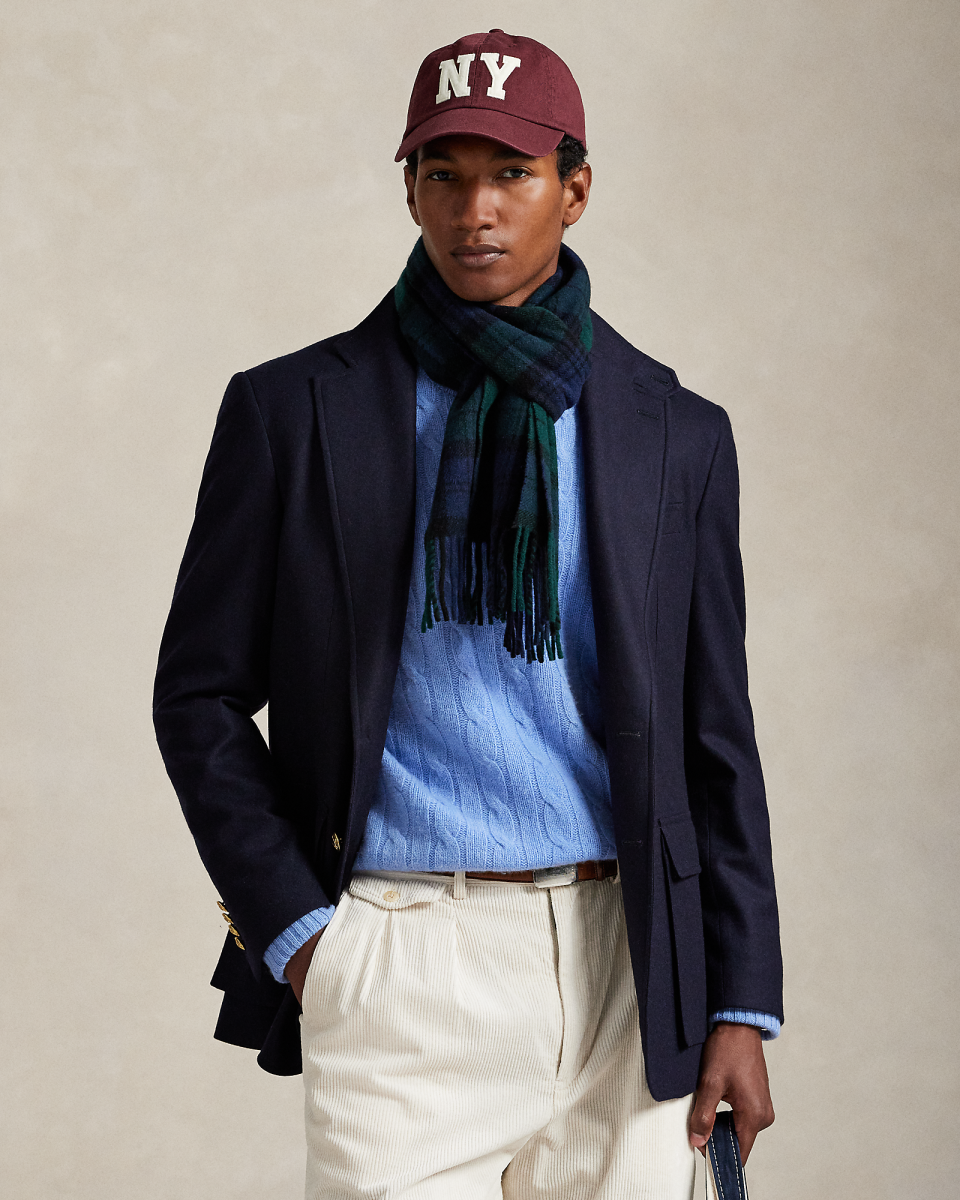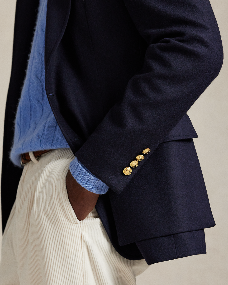 RL67 外套专为纪念 Ralph Lauren 成立 50 周年而打造,灵感源自运动外套——自 1971 年以来一直被 Lauren 先生视为衣橱常备单品,这款外套经全新演绎,选用磨毛法兰绒制成,配有标志性金属纽扣,该面料专为 Polo Ralph Lauren 定制研发