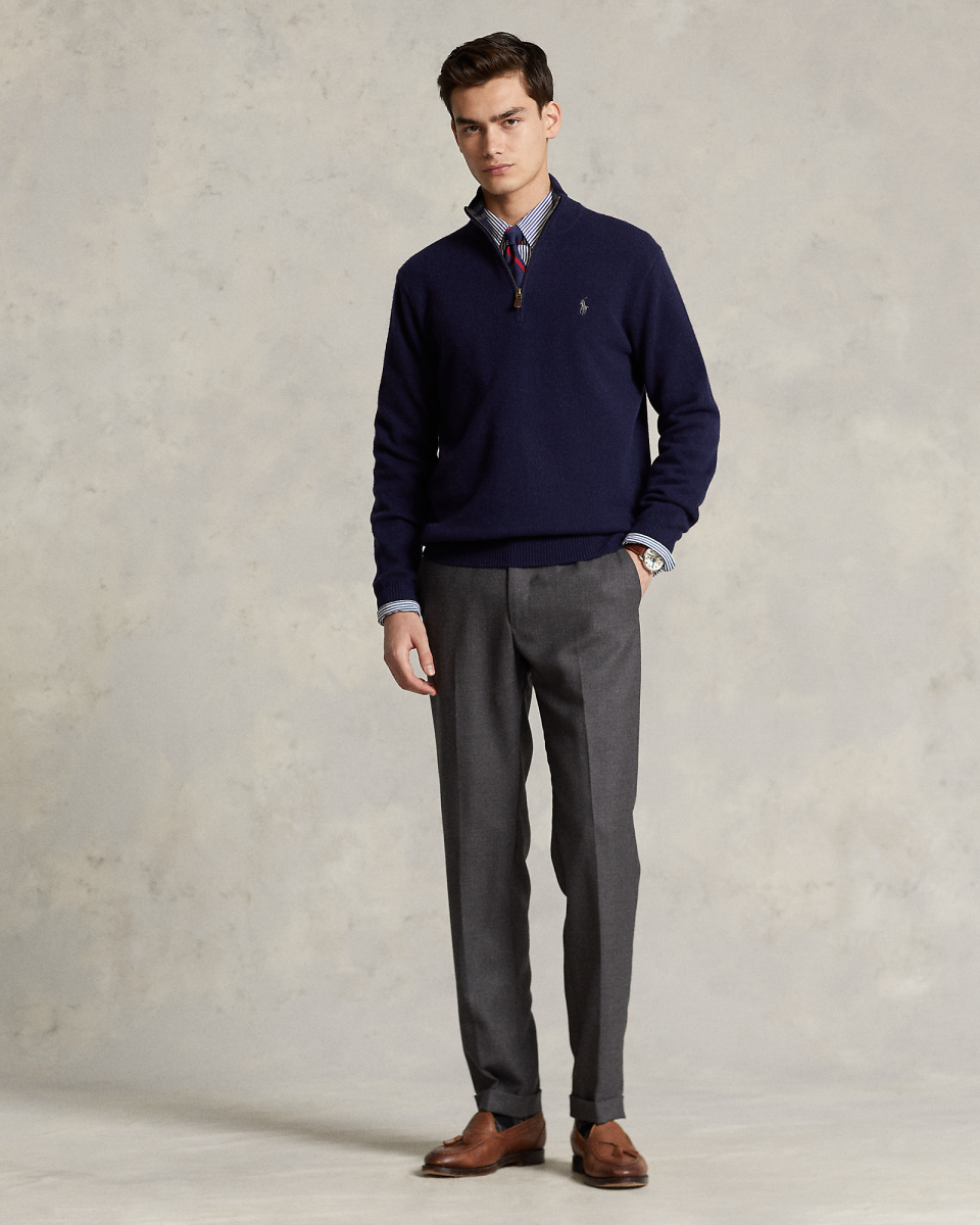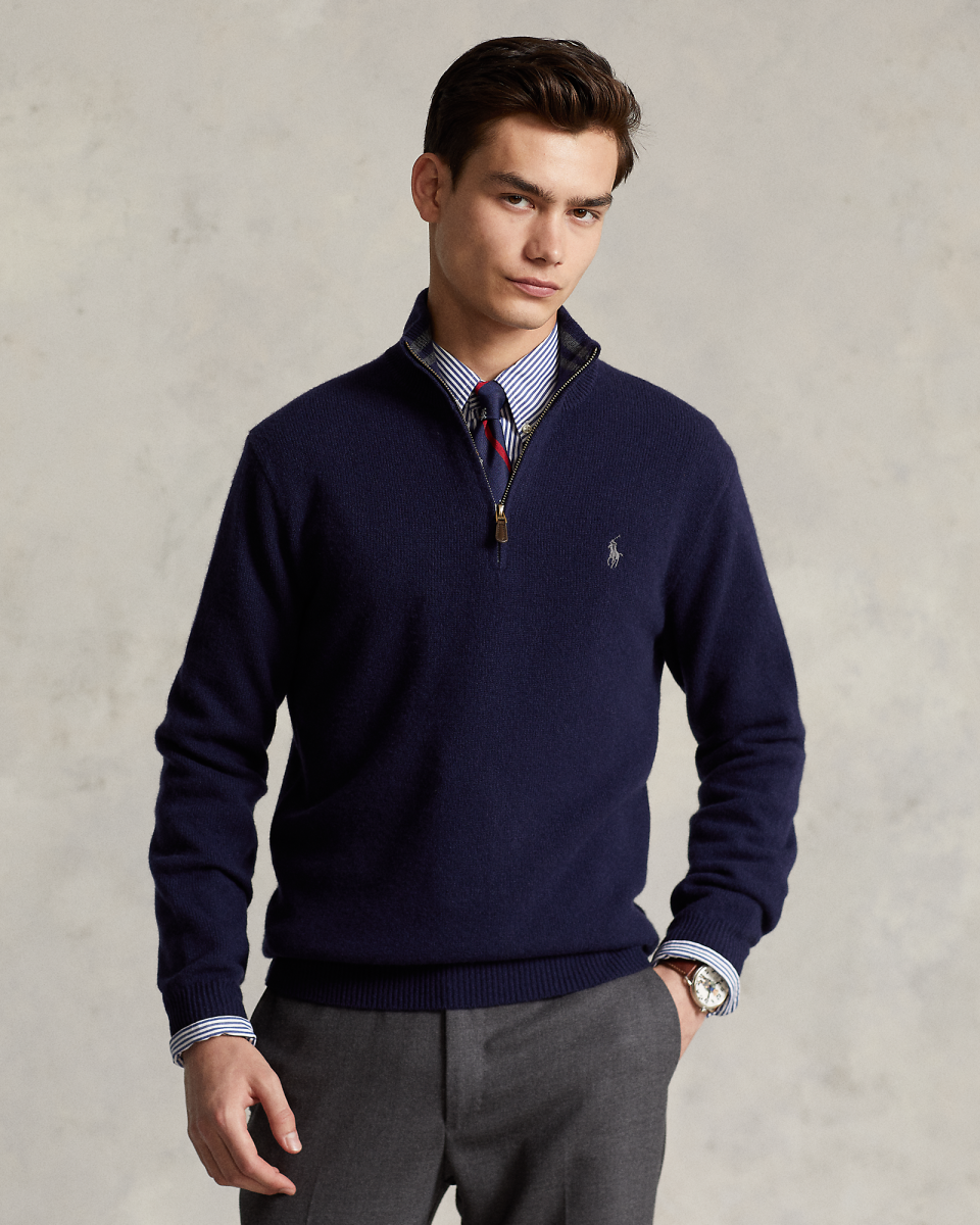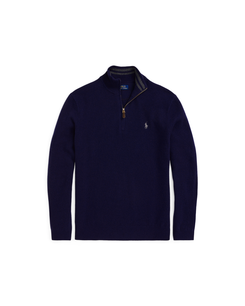 这款四分之一拉链针织毛衫选用舒适的纱线织就,饰有标志性小马刺绣