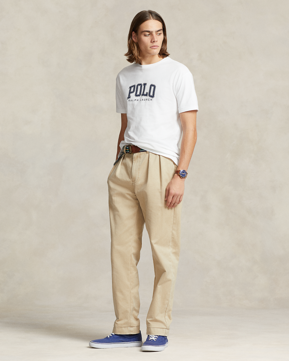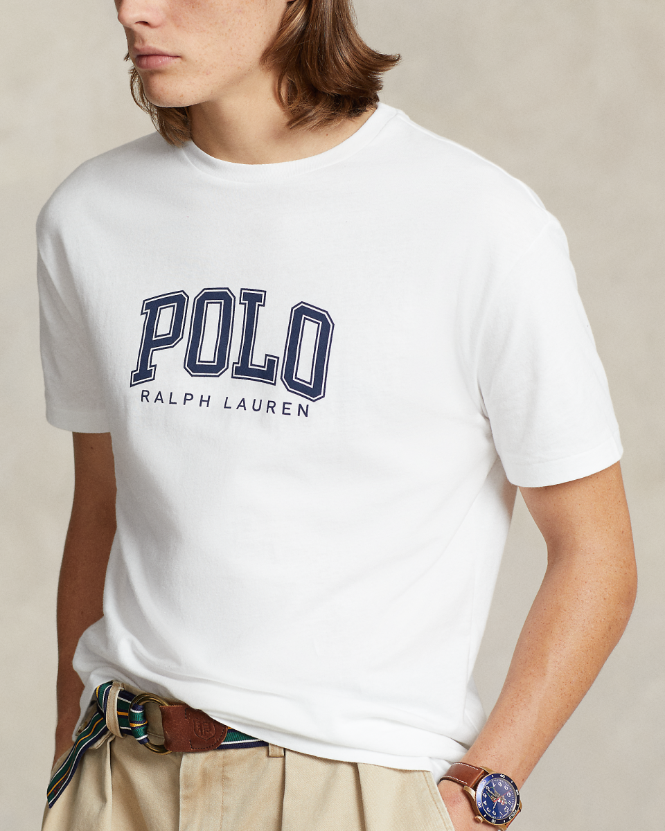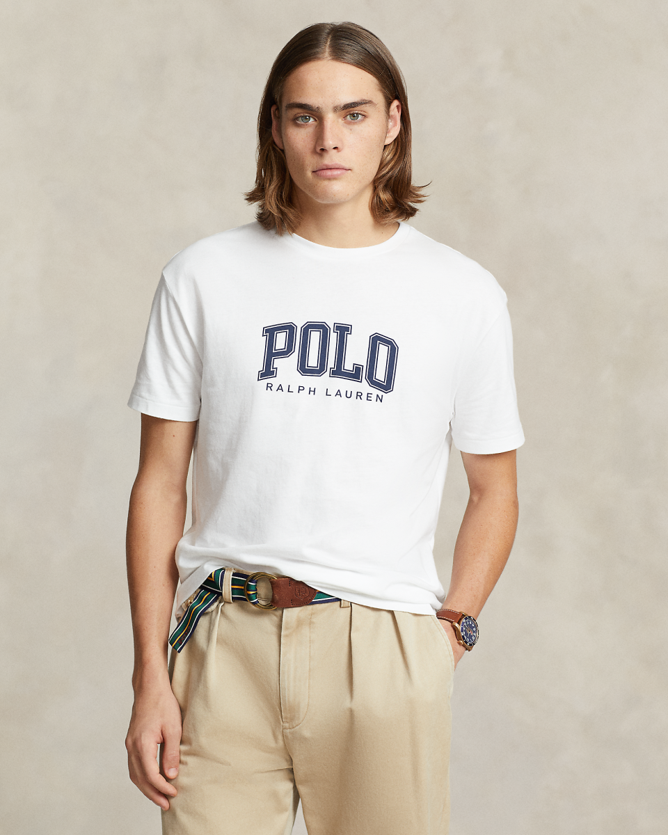 除了我们的标志性小马刺绣,这款棉质 T 恤胸前还印有学院风正楷字母徽标