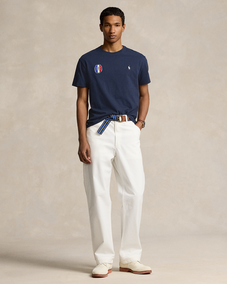 这款 T 恤选用柔软的棉质平纹针织面料制成,饰有灵感源自法国旗帜的标志性补片