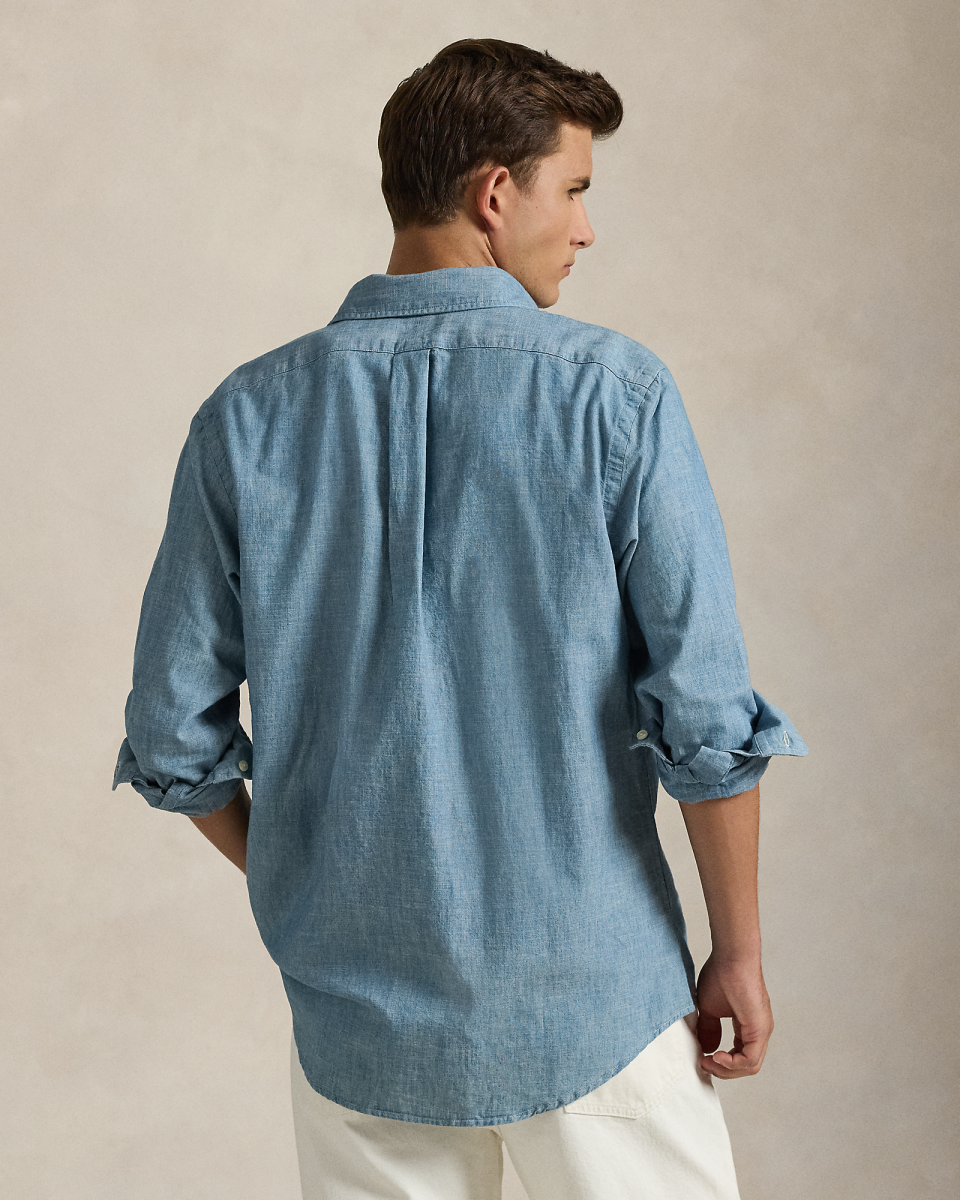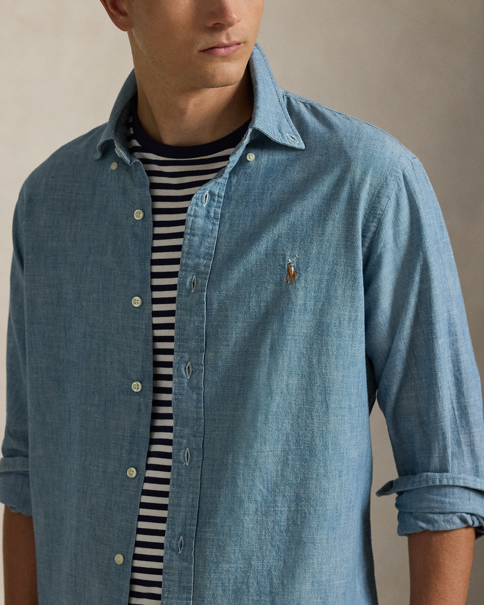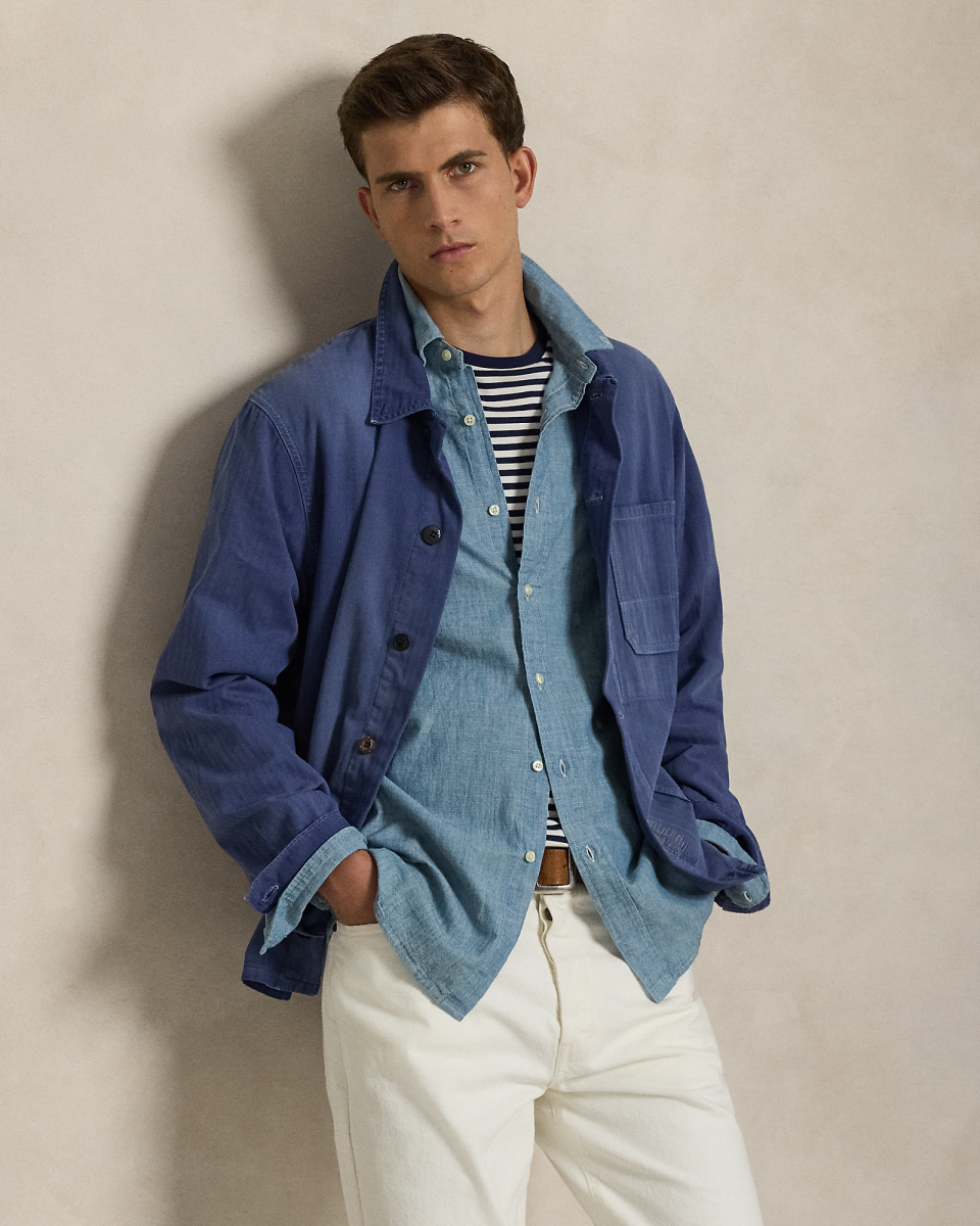 这款靛蓝染色棉质衬衫采用宽松剪裁,轻盈的面料经石洗处理,呈现仿旧的外观