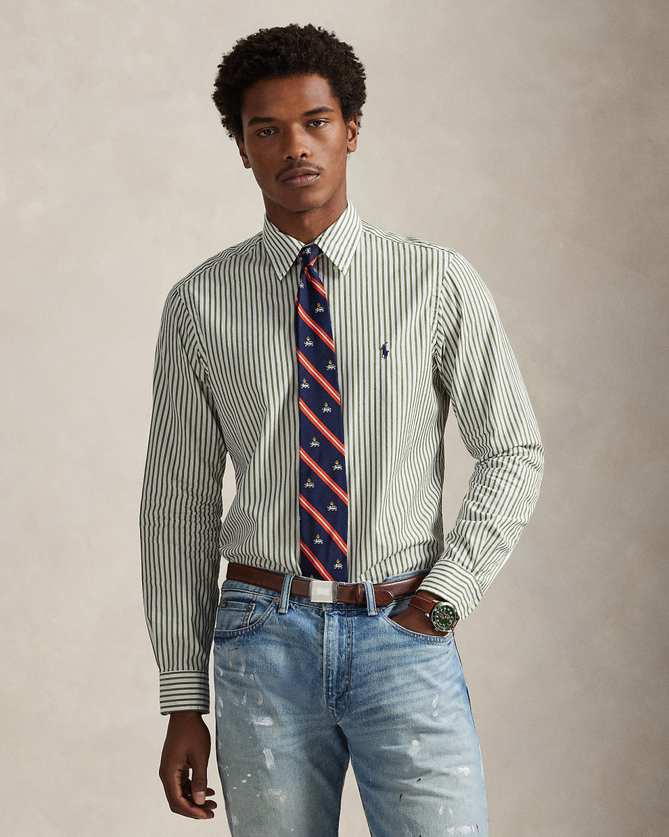 这款经典的条纹衬衫选用棉质面料制成,经水洗处理,柔软度佳,胸前左侧绣有标志性小马图案,彰显经典风格